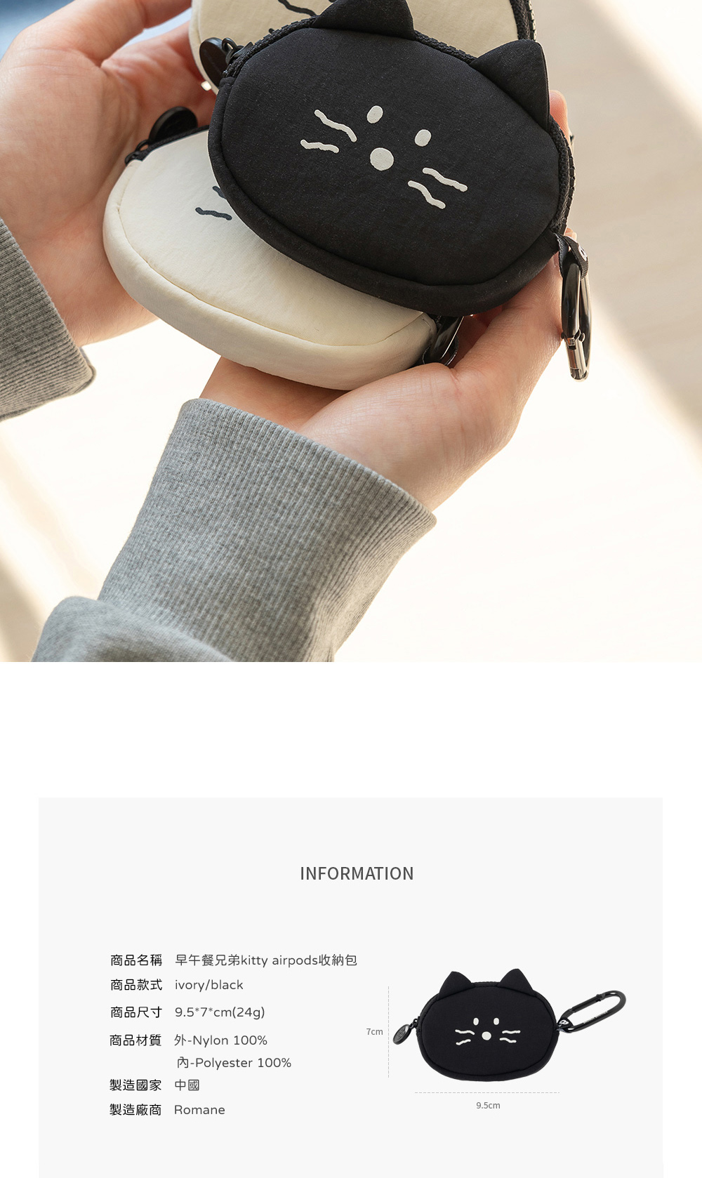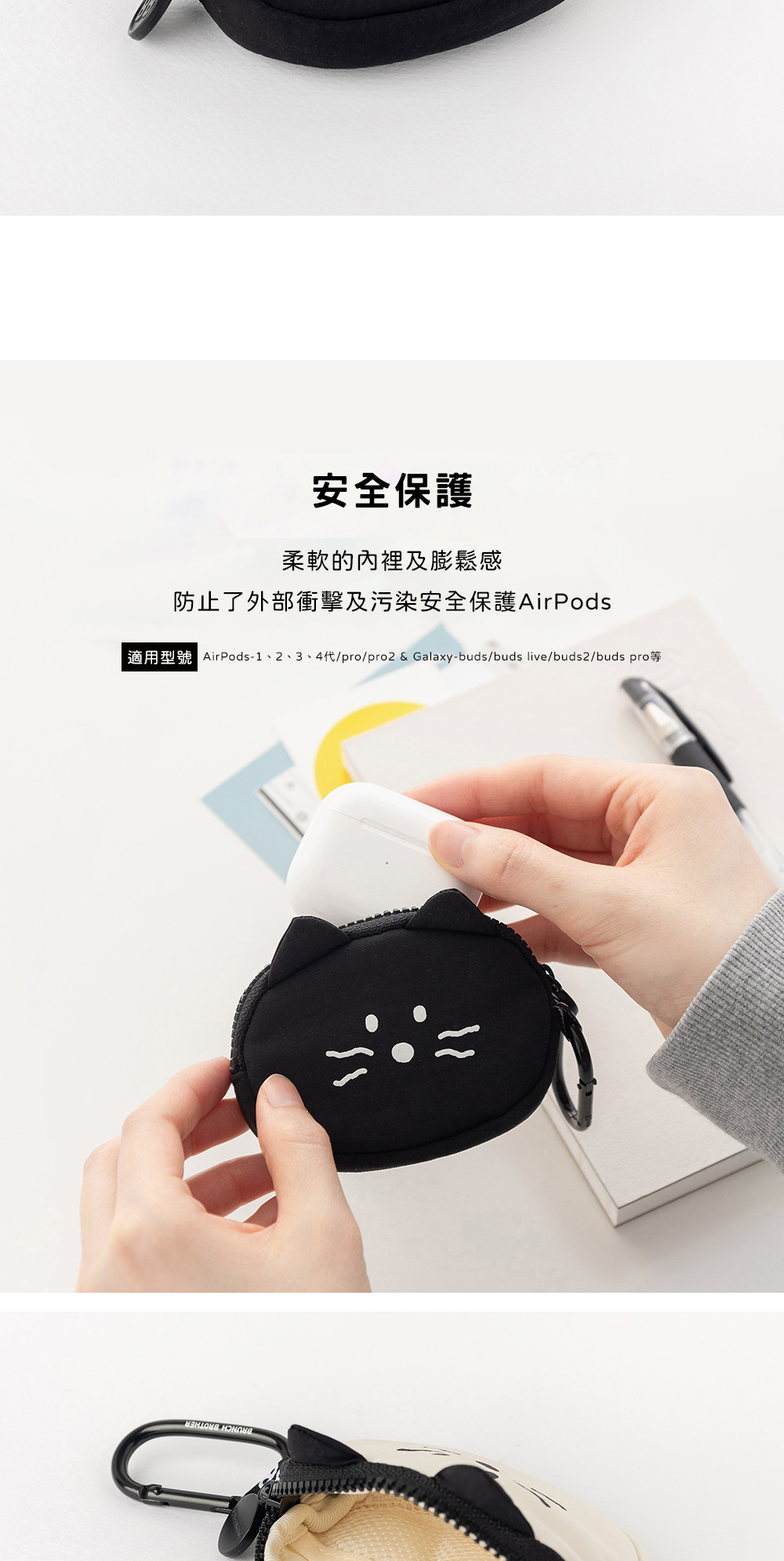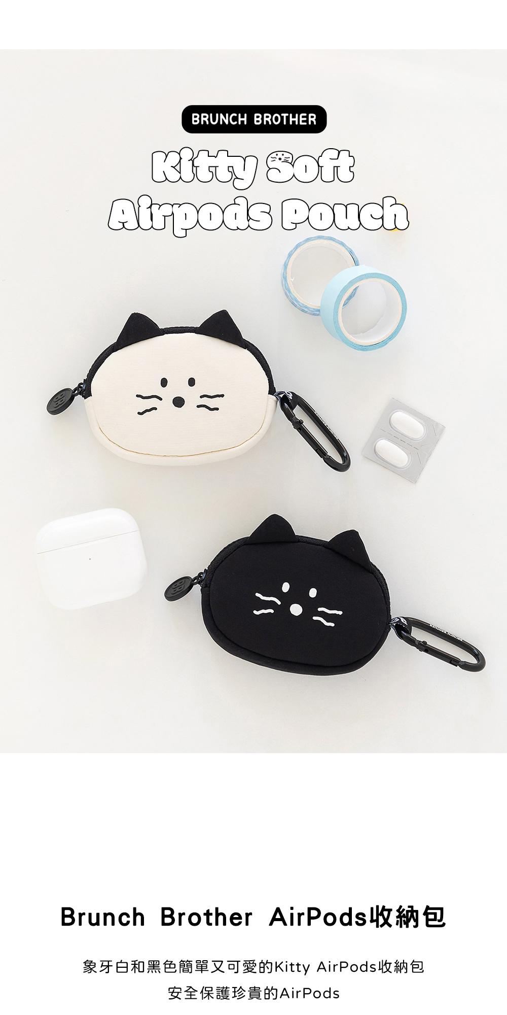 象牙白和黑色簡單又可愛的kitty airpods收納包