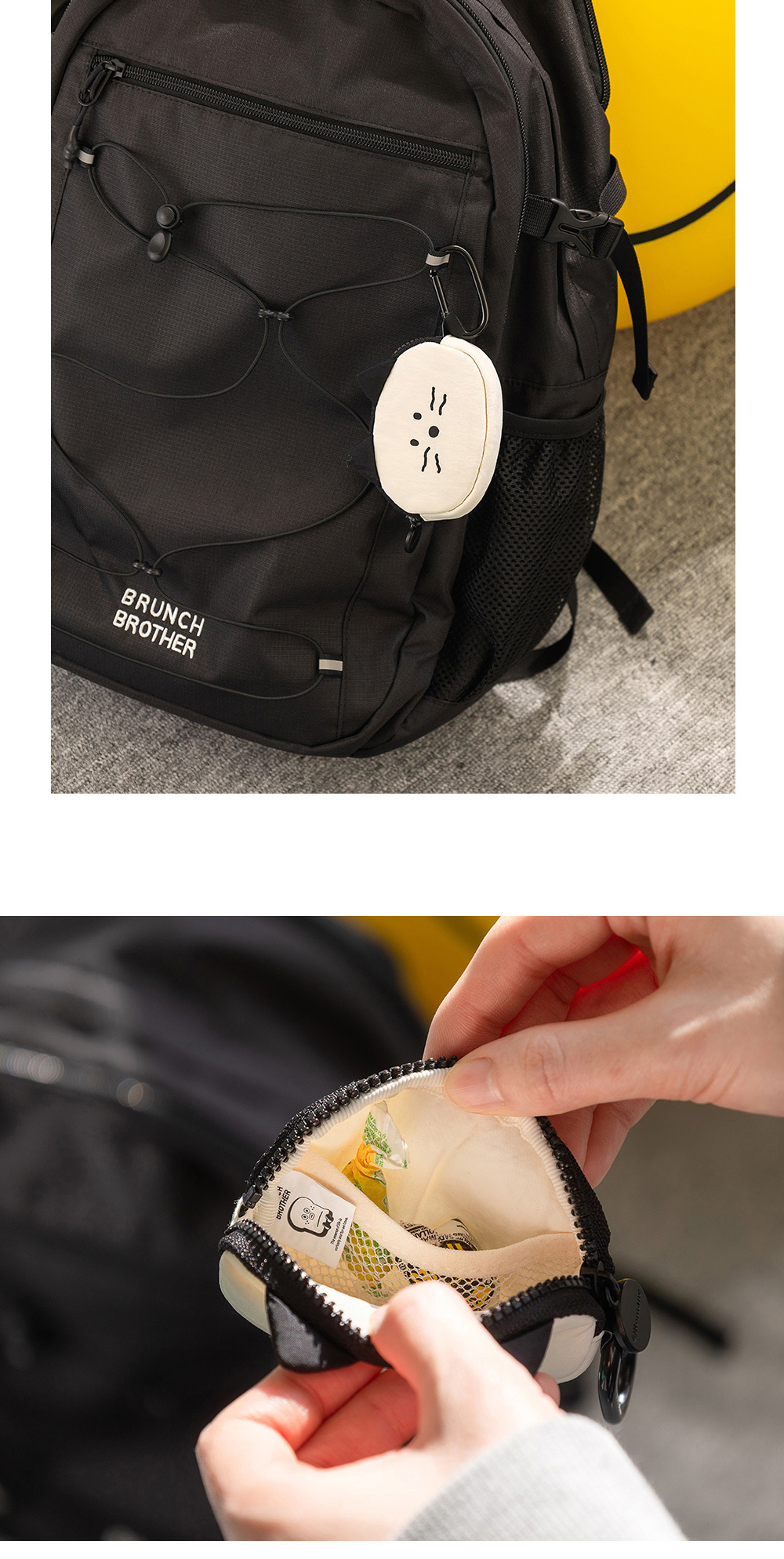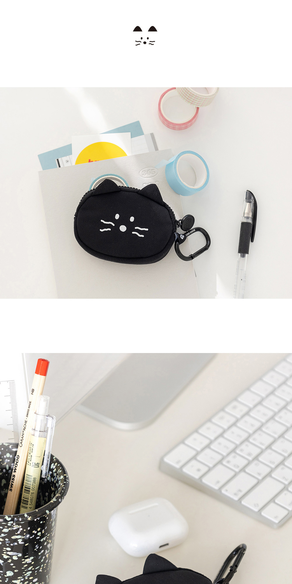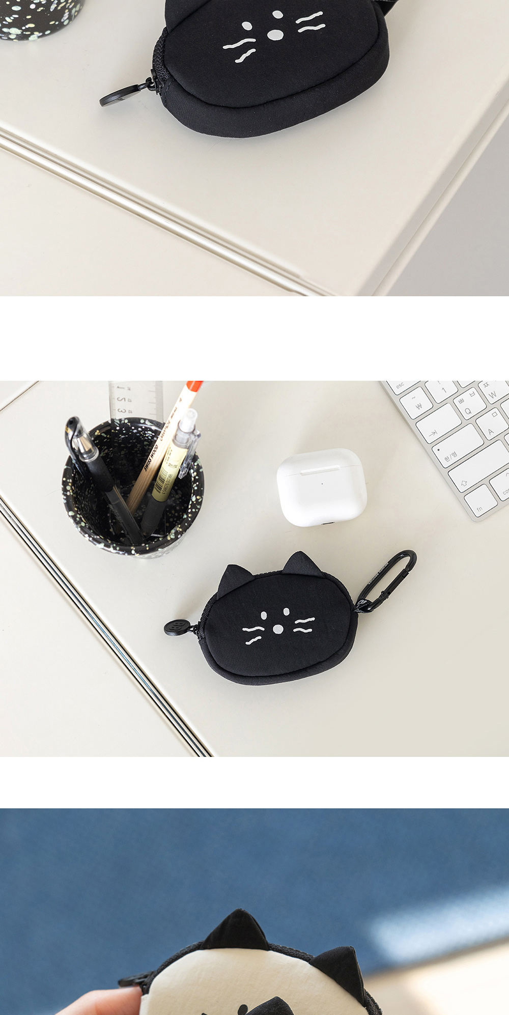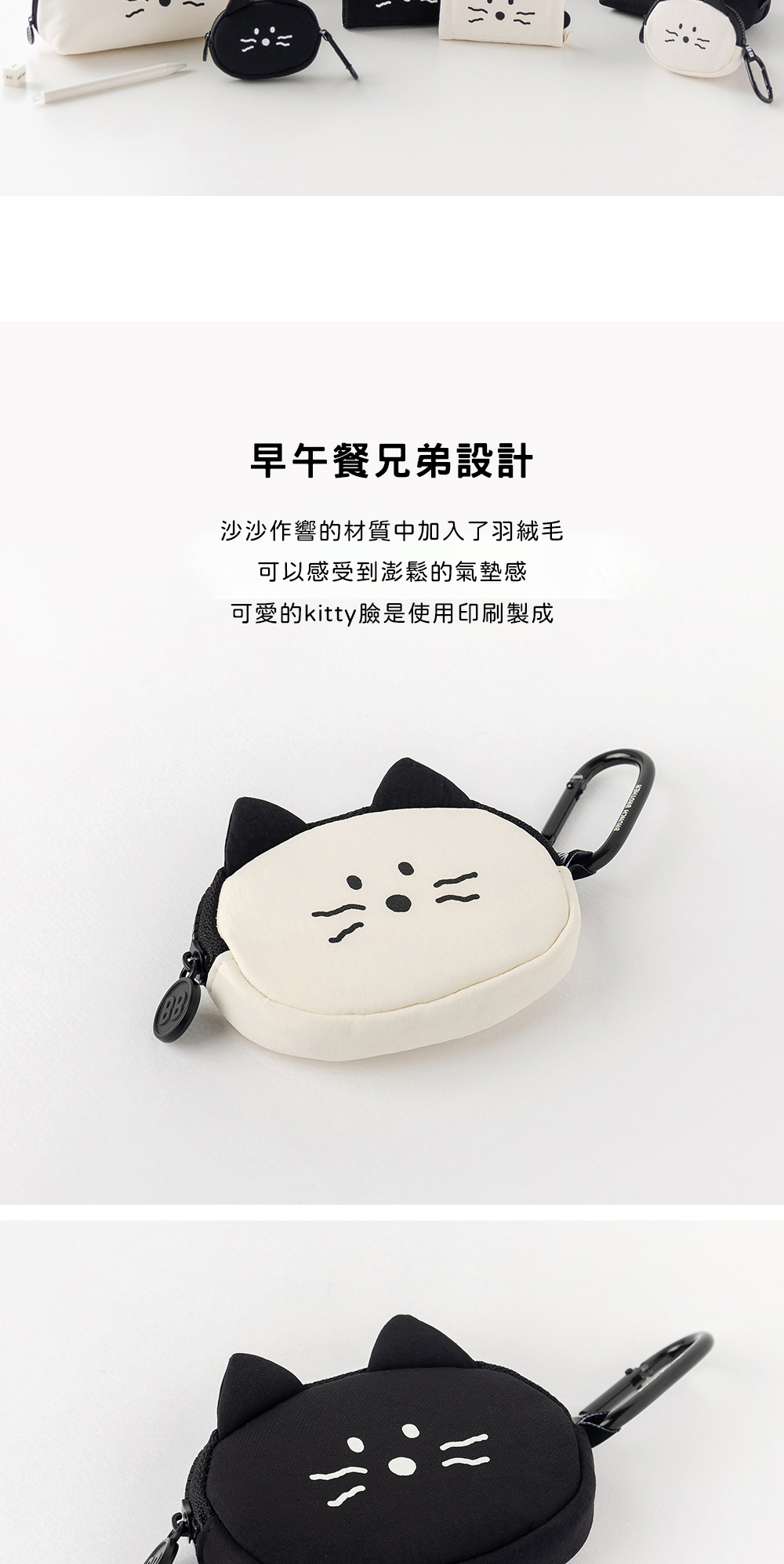 象牙白和黑色簡單又可愛的kitty airpods收納包