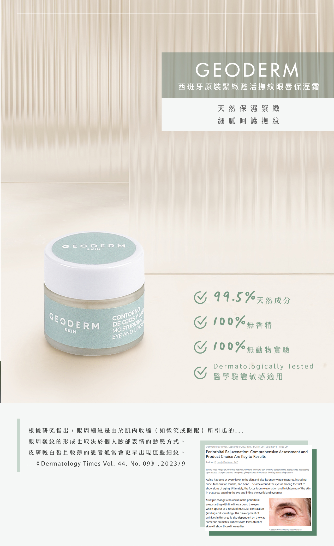 🌿GEODERM西班牙原裝緊緻甦活撫紋眼唇保溼霜10 ml