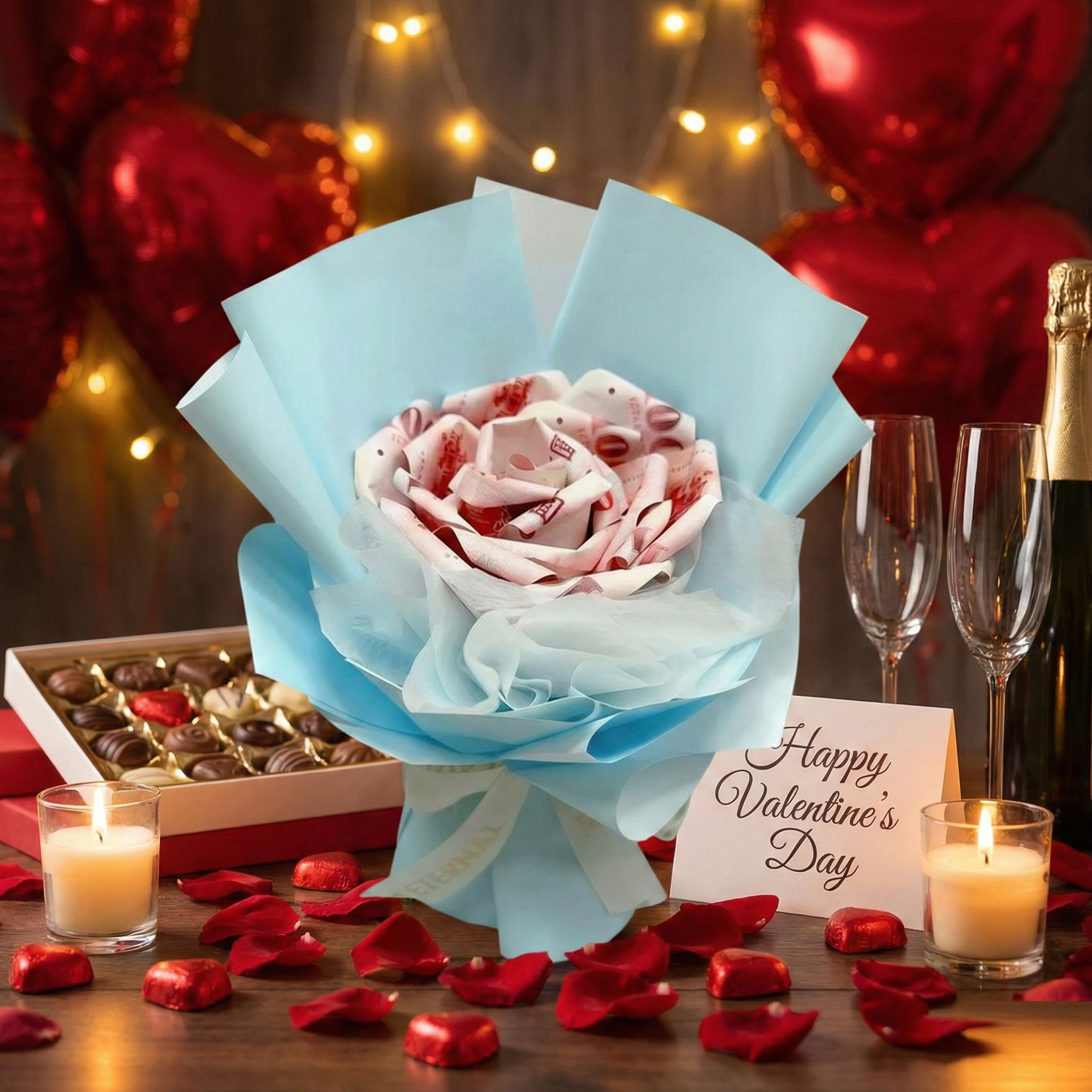 用鈔票捲成朵朵玫瑰,不凋花藝包裝,浪漫又霸氣