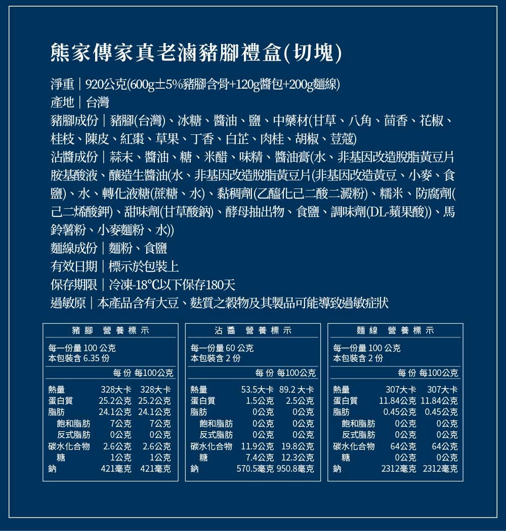 【屏東熊家豬腳】萬巒豬腳切塊+醬包2包+麵線1包+禮盒總重量955g 屏東 在地美食 祝壽 孝親 送禮