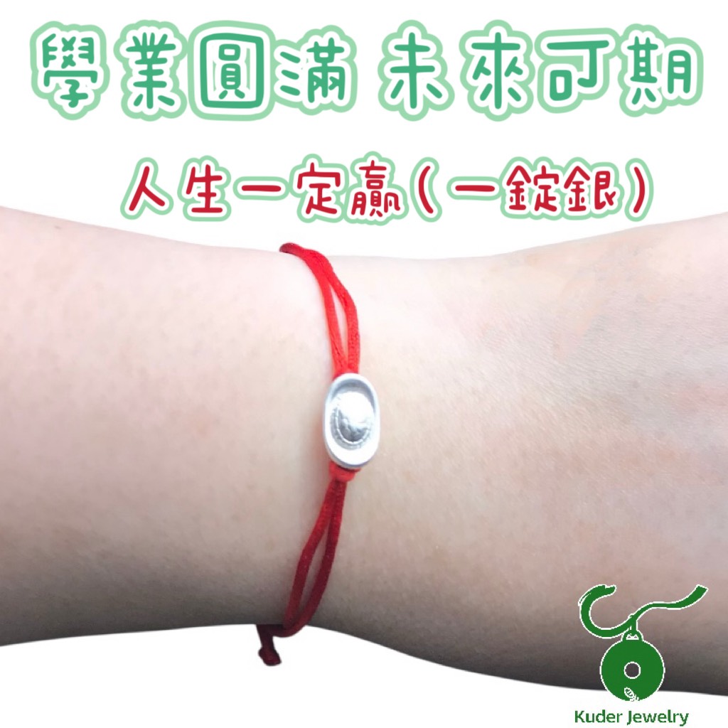 主商品: 一錠銀手鍊 : S990純銀尺寸: 12.5 * 7.5 * 6.5 mm ,重0.5g 以上 中國節手工編繩, 手圍可調.
