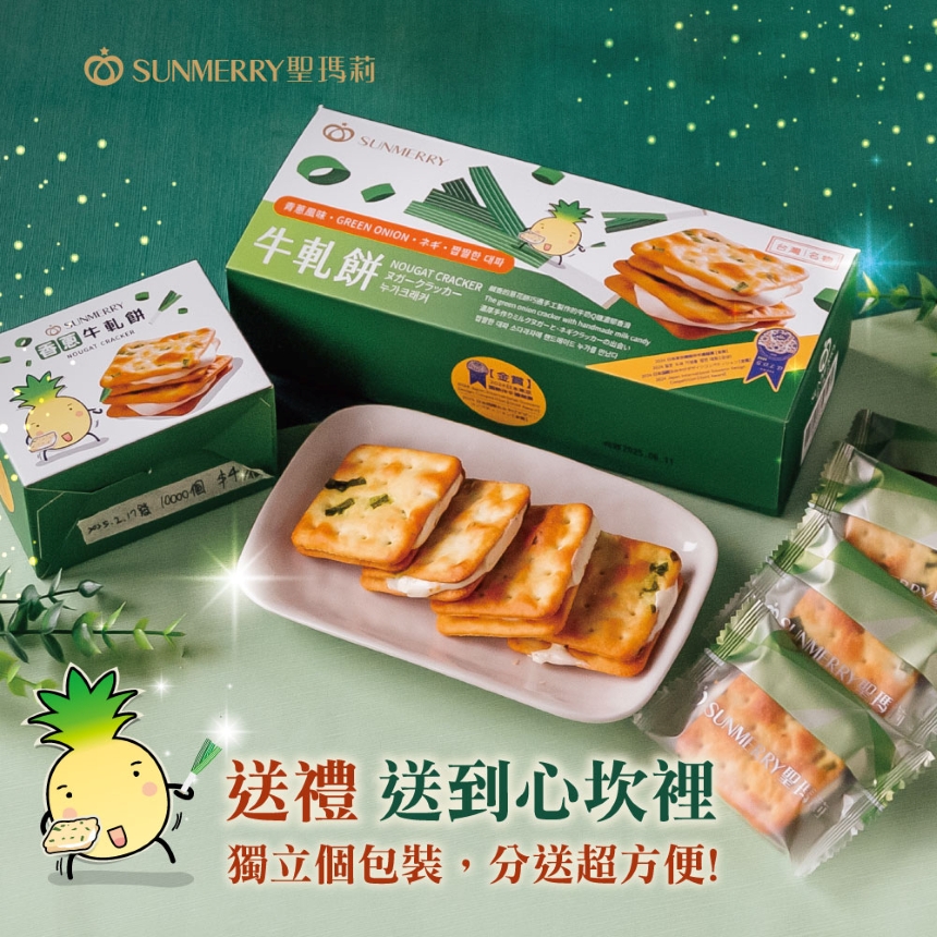 ◆商品內容商品組合/規格:香蔥牛軋餅10入 X2盒商品品名:香蔥牛軋餅10入商品重(容)量:14克/個內容物名稱(成分):麵粉、棕櫚油、青蔥、糖、鹽、L-麩酸鈉(味精)、麥芽二糖、水、葡萄糖、水、乳糖、全脂奶粉、無水奶油、酵母、碳酸氫鈉(小蘇打)、精緻麥牙(麥芽三糖以上寡糖、(棕櫚油、乳脂、香料、抗氧化劑(混合濃縮生育醇)、β胡蘿蔔素(葵花籽油、β胡蘿蔔素);義大利蛋白霜(糖粉(砂糖、樹薯澱粉))、砂糖、蛋白濃縮粉(肌蛋白粉、乙化甲酸)、二澱粉、糖、明膠(豬)原產地(國):台灣