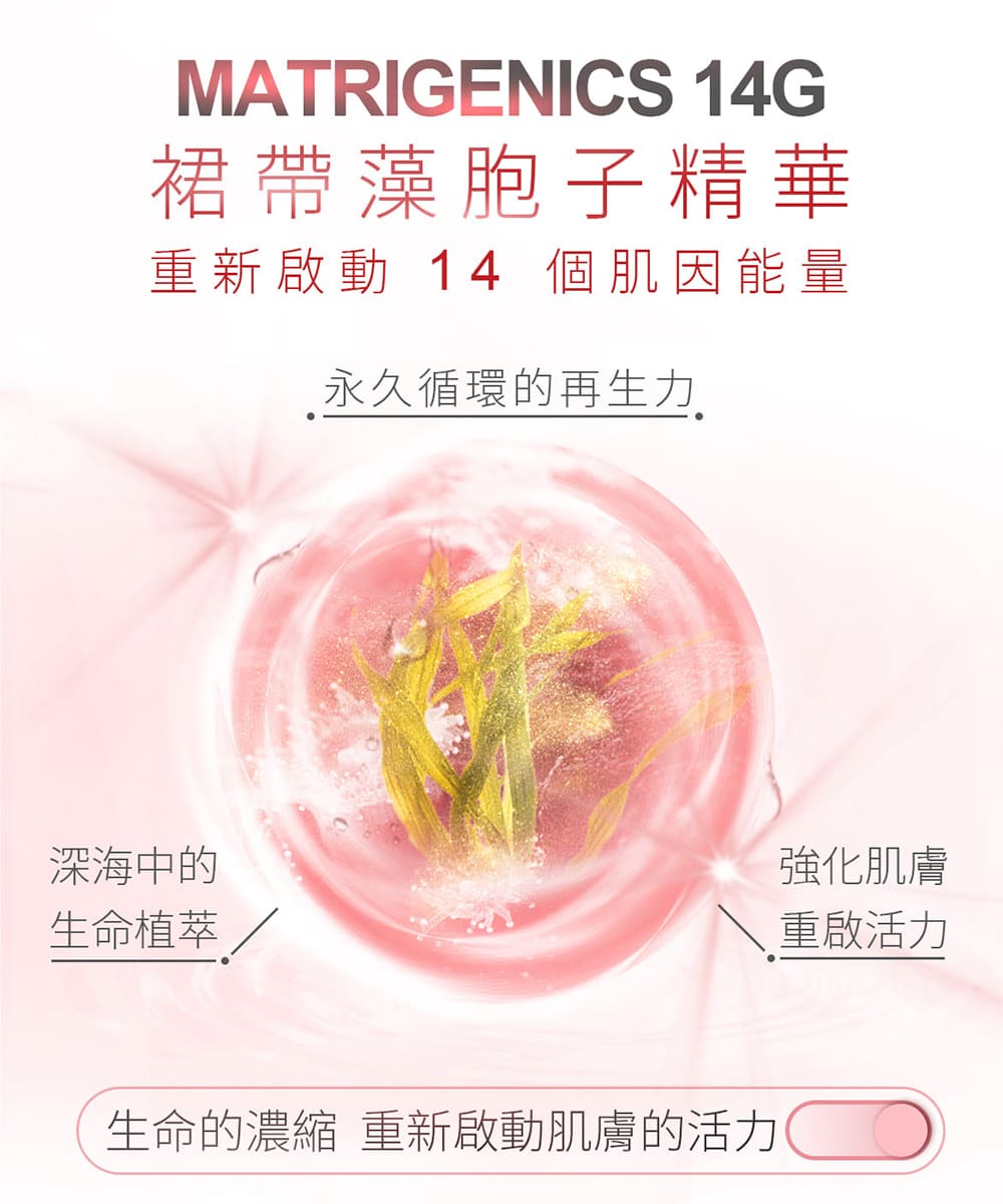 ■添加MATRIGENICS 14G延緩肌膚老化,有效平滑緊實肌膚,使肌膚有光澤。