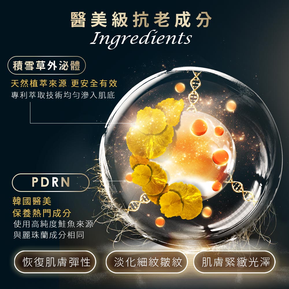 雙重修護力量-合PDRN(鮭魚DNA)與積雪草外泌體。
