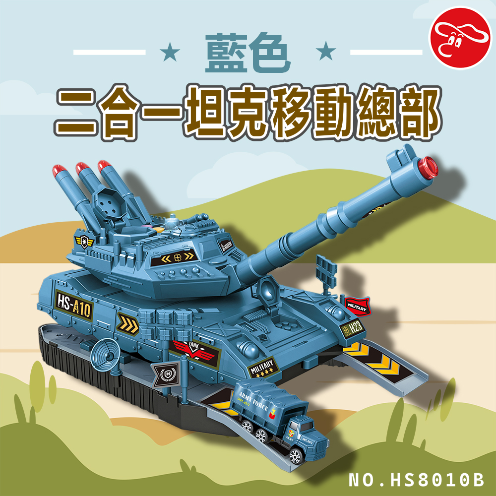 產品名稱:二合一坦克移動總部-藍色產品型號:HS8010B適玩年齡:3歲以上包裝尺寸:40.3*26*14.7CM產品尺寸:40*19.5*36CM產品顏色:藍電力需求:2顆1.5AA電池