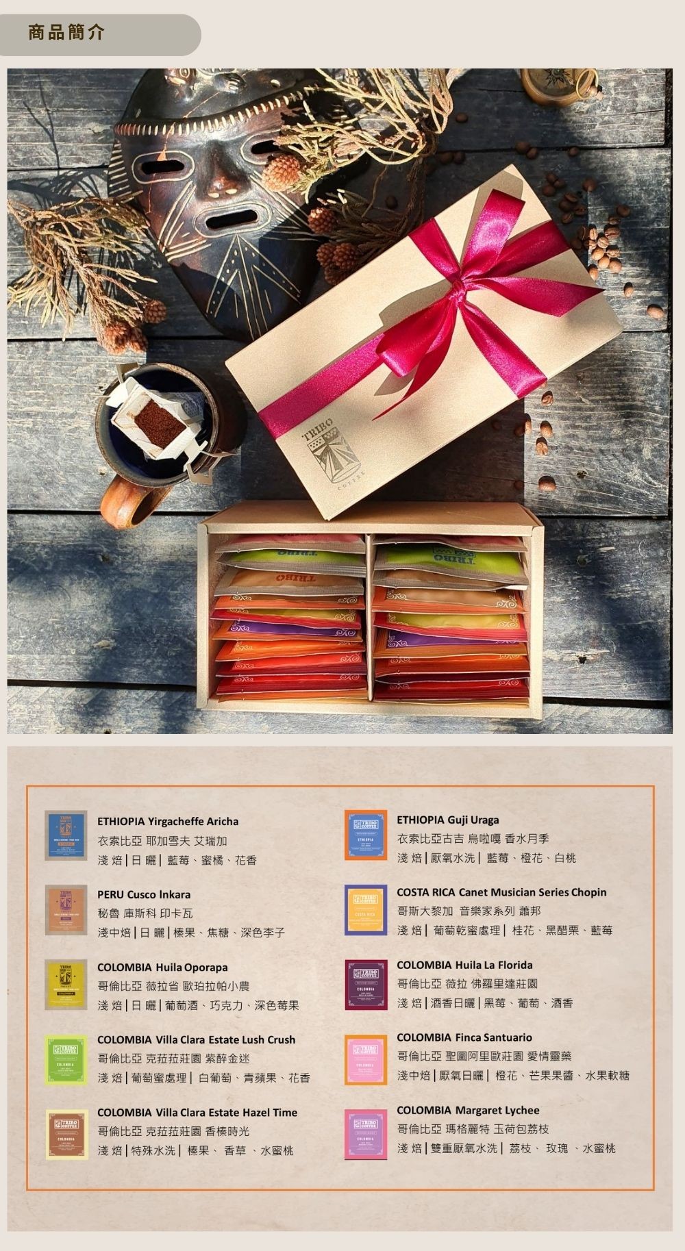 品 名: TRIBO COFFEE 領航家 濾掛式咖啡禮盒 (20入/10種口味)