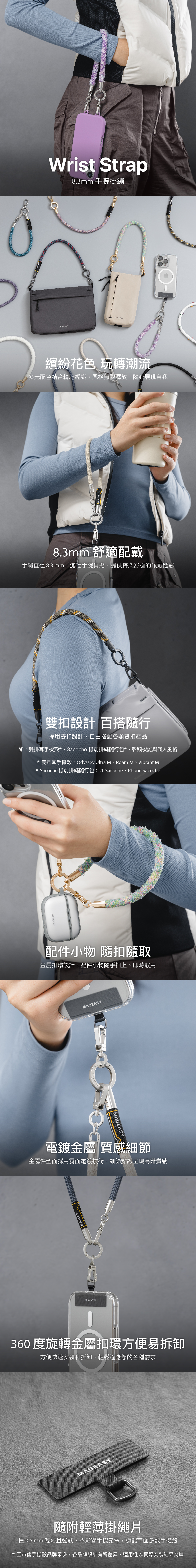 ▶商品內容 名稱:【MAGEASY】8.3mm Wrist Strap手腕掛繩 / 掛繩片組(相容 iOS / Android 手機殼)