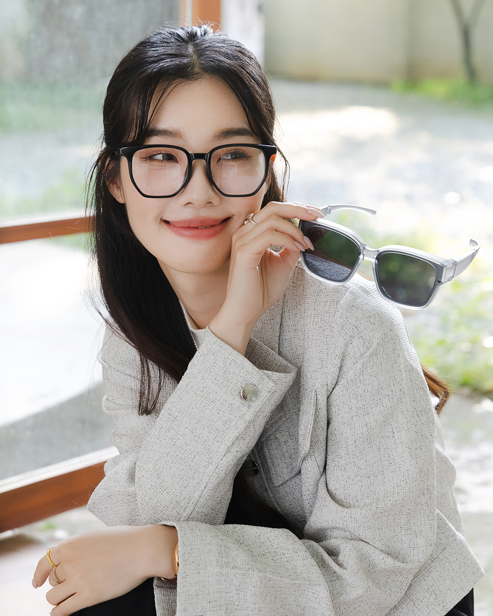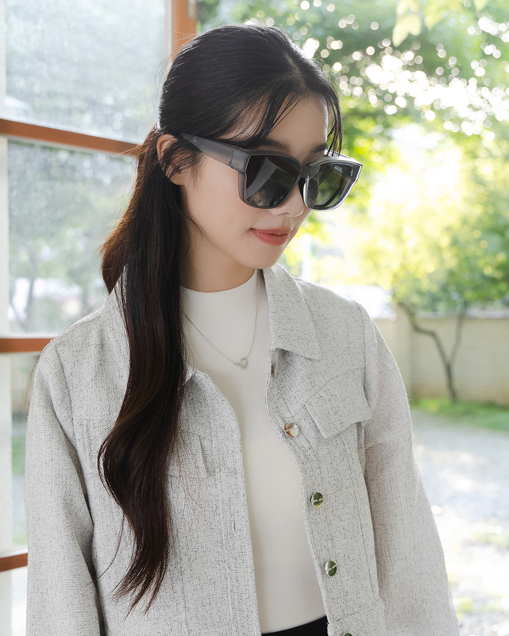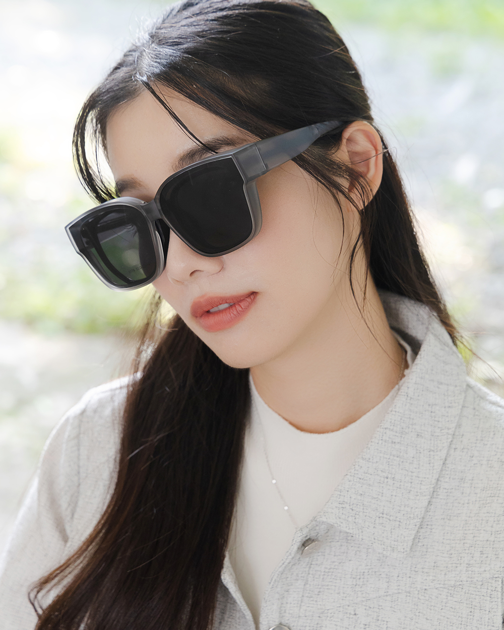俐落線條勾勒出鮮明輪廓,大鏡片設計彰顯強烈都市氣場。摺疊款套鏡方便收納於包包或是車上,隨手可得的時尚感單品。
