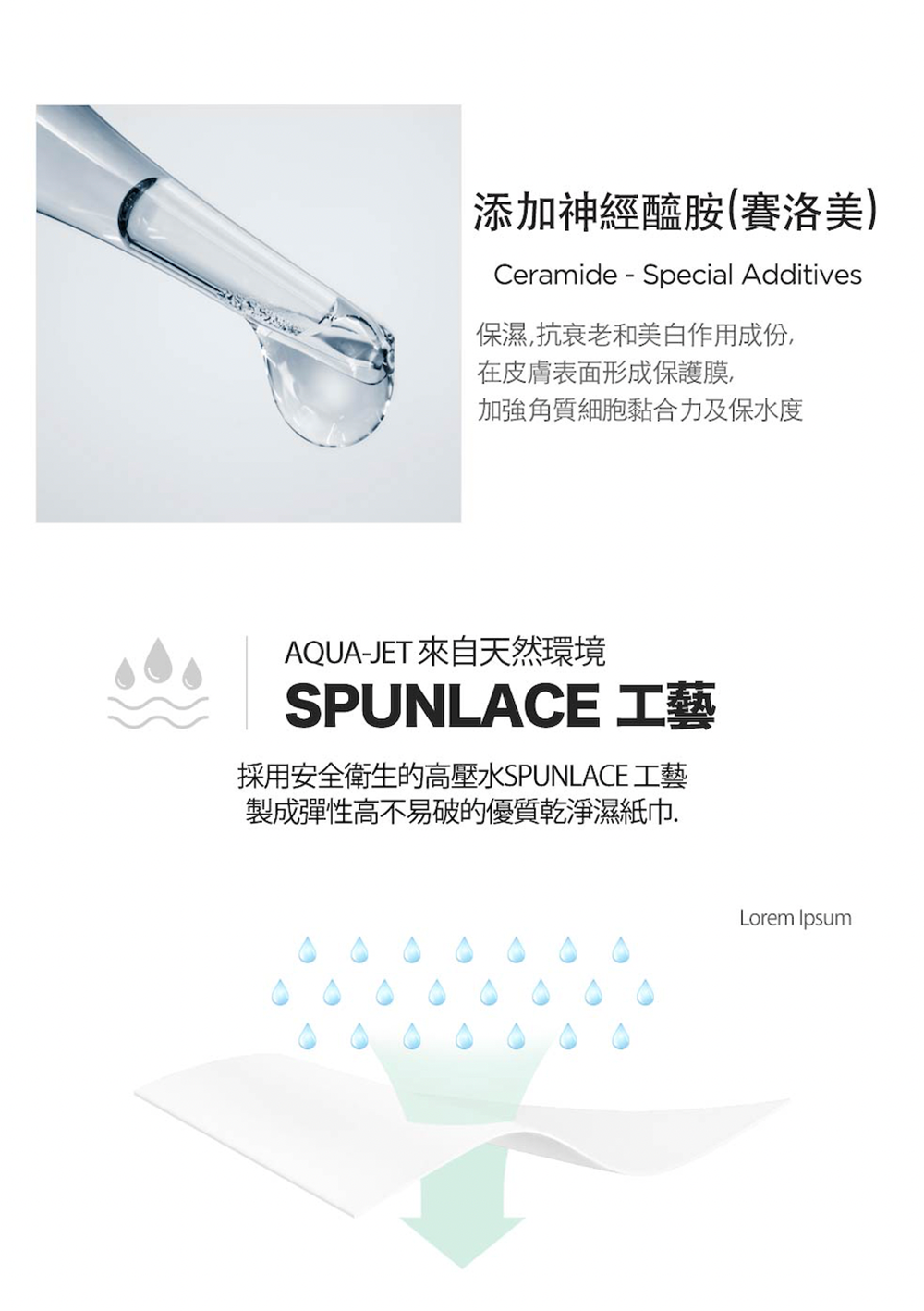 優質濕紙巾四大特色:高級壓花面料|7層過濾純水|皮膚無刺激認證|天然有機金盞花