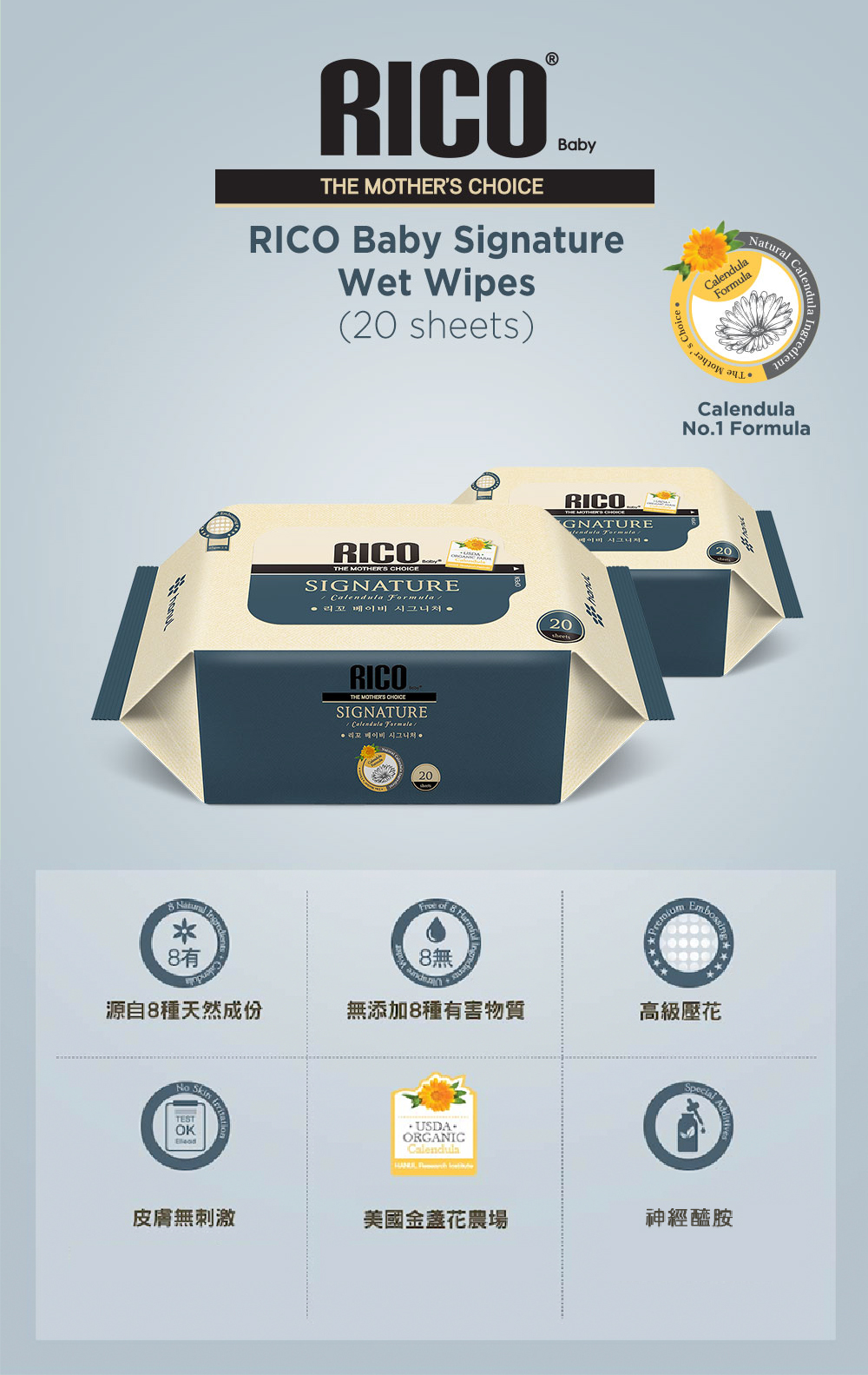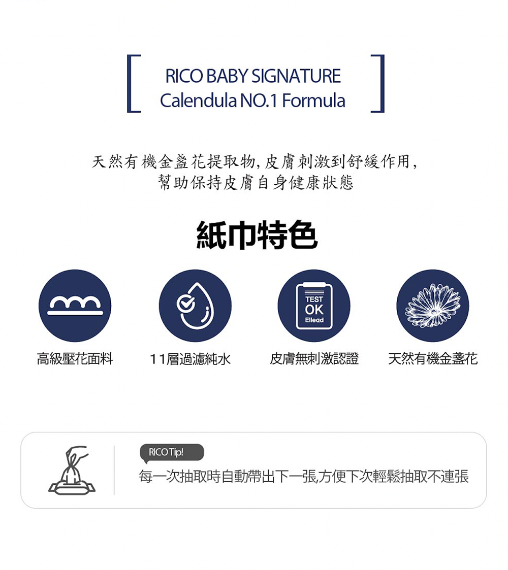 韓國 RICO baby 金盞花有機天然特厚款濕紙巾-箱購-Signature藍20片x24包