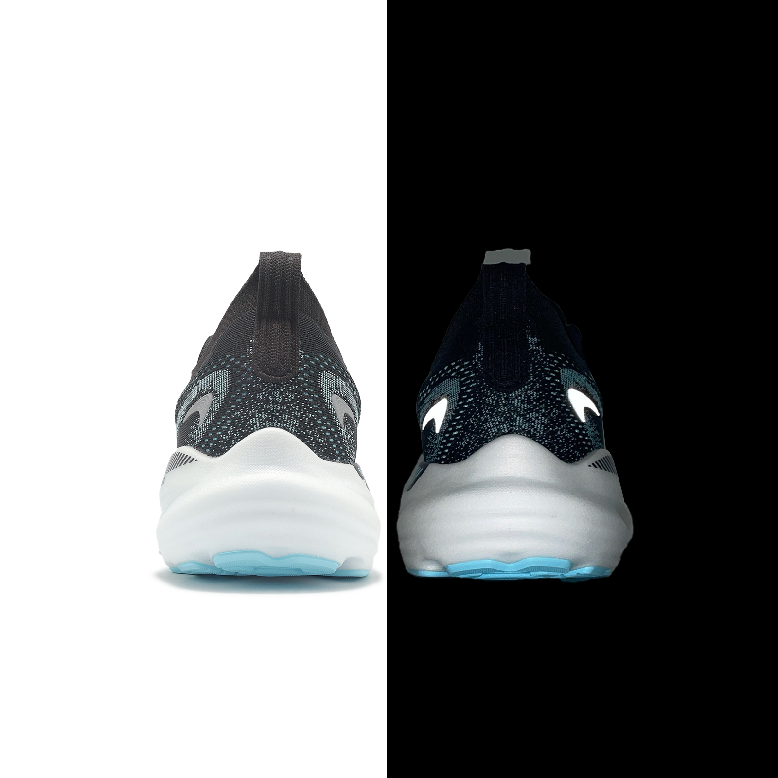 * 後跟處採用大型球型氣囊,提供柔軟的觸地體驗;前腳掌處採用小型球型氣囊,提供離地時所需的推進力。