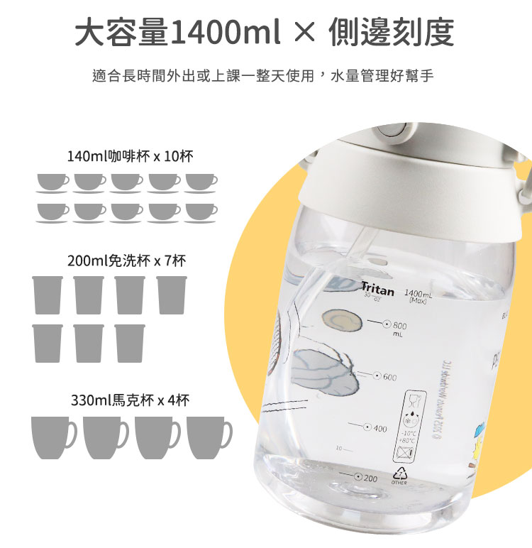 材 質:瓶身/TRITAN(改質PCT,耐熱-10˚C~80˚C)