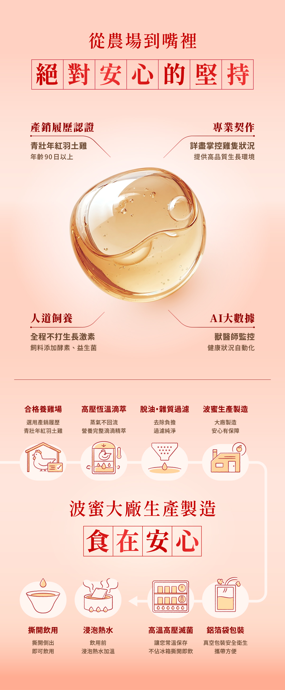 .有效抗疲勞,全台首支健字號人體實證.10 項國內外大獎加持,品質看得見!.100%全雞新鮮滴煉,絕不含一滴水.0脂肪0膽固醇,健康無負擔.天然低鈉,6個月以上寶寶副食品也適用