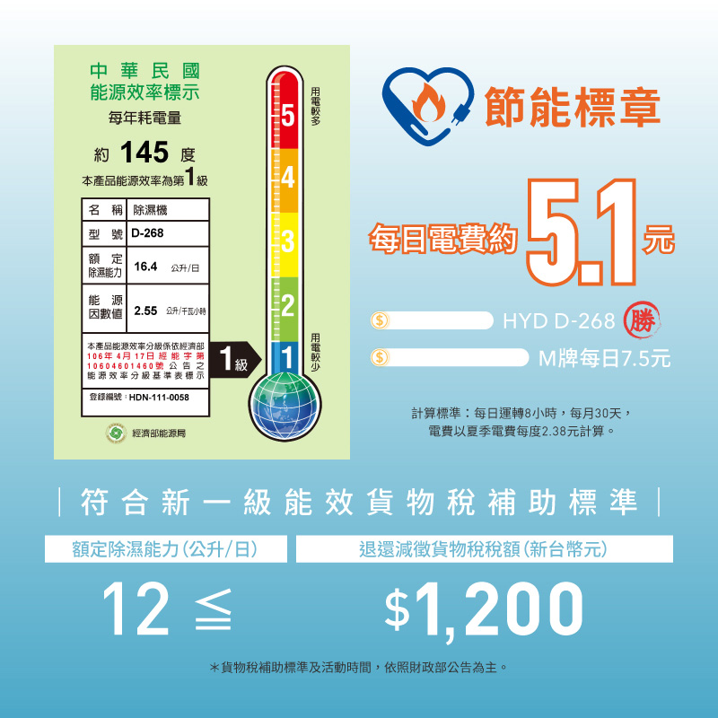 【HYD】16.4公升一級能效高效極簡美型除濕機 D-268(適用18坪)吸水怪獸|點數加碼
