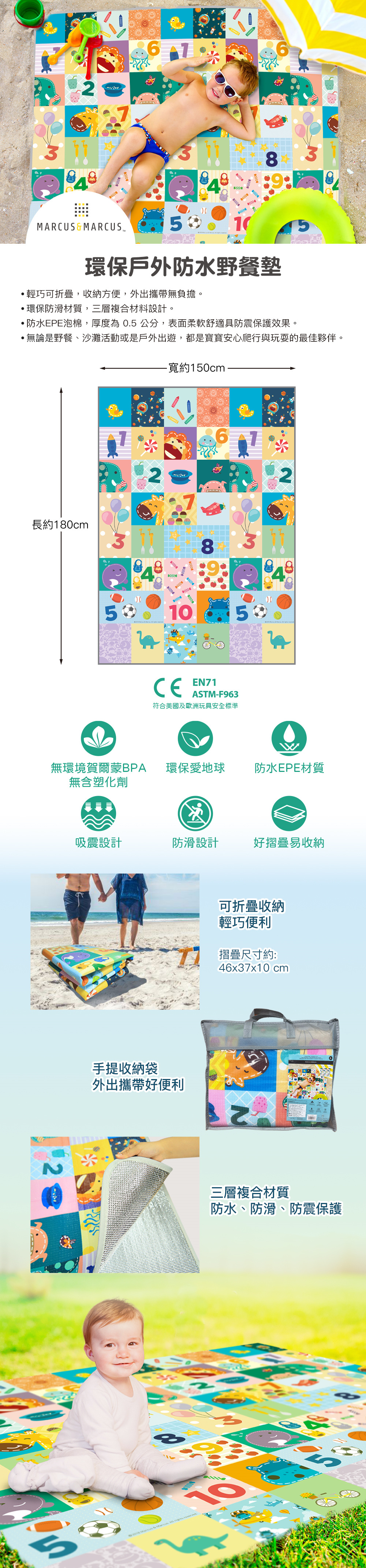 名稱:MARCUS&MARCUS 環保戶外防水野餐墊(附提袋)
