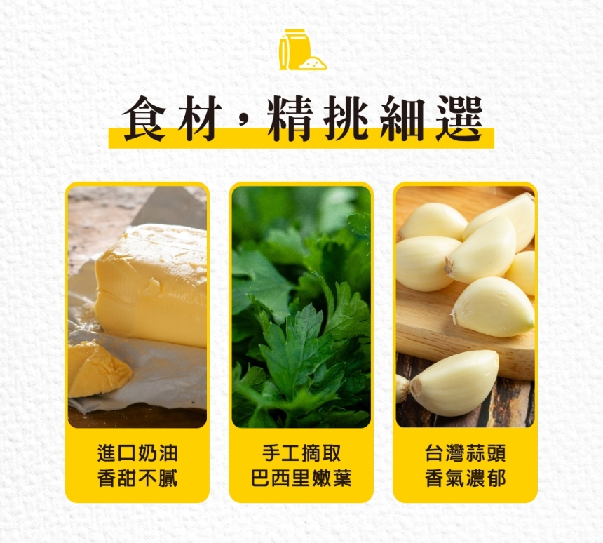 ◆商品內容商品組合/規格:蒜泥厲害3入 X2袋商品品名:蒜泥厲害3入商品重(容)量:540公克/袋蒜泥厲害內容物名稱(成分):麵粉、水、黃豆、蛋、蜂蜜、鹽、乾酵母、奶油、奶油、蒜頭、巴西利、糖、鹽、起司粉原產地(國):台灣