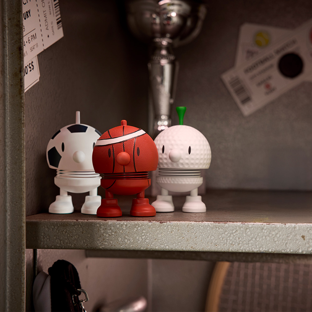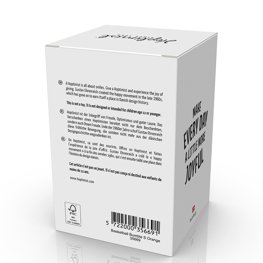 是丹麥國民玩具品牌 Hoptimist 自 1960 年代創立以來傳遞的品牌精神,創辦人 Hans Gustav Ehrenreich 在他的小工作坊,最初設計為女孩 Bimble 與男孩 Bumble 圓圓腦袋的彈簧公仔,充滿童趣的模樣,在彈跳時散發出來的歡樂形象,一經推出變大受歡迎,參與了許多國際知名展覽並獲獎無數,成為代表丹麥的知名玩具設計。