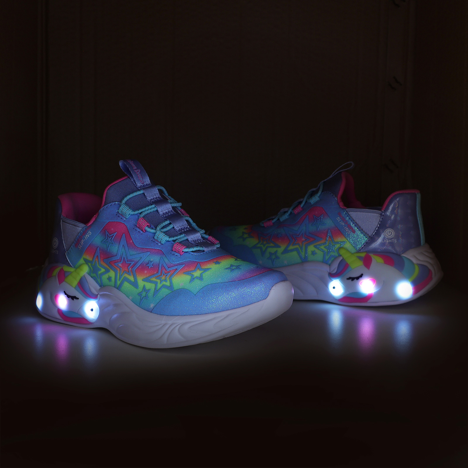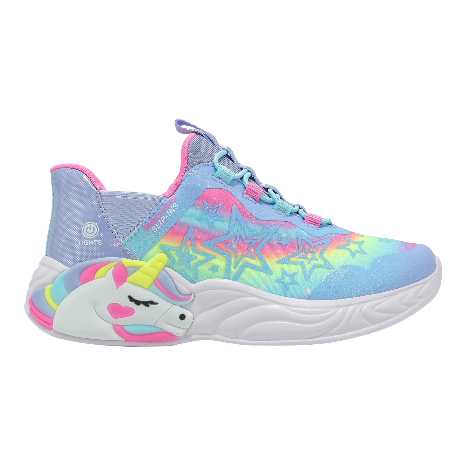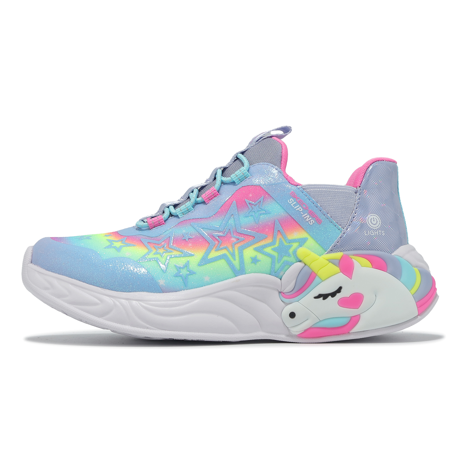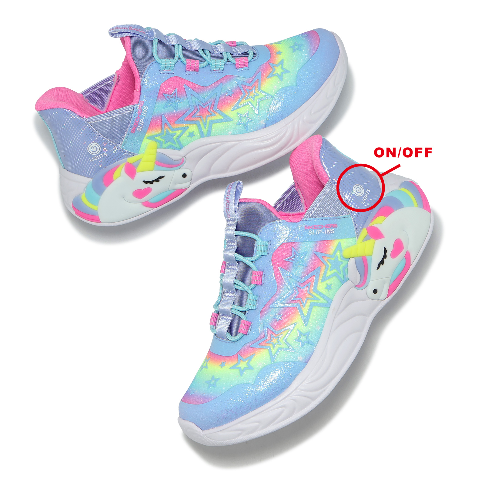 品牌: SKECHERS型號: 302296-LLVMT品名: S Lights-Unicorn Dreams-Starry Lite Slip-Ins版型: 版型正常* 燈鞋開關位置詳見圖片說明。