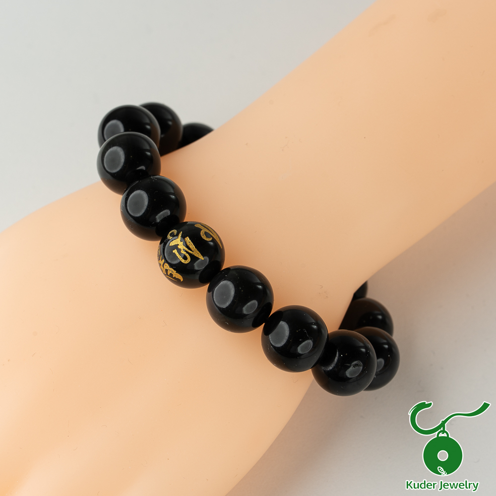 [快速出貨]【Kuder Jewelry】男款中性款天然黑曜石心經六字真言描金手鍊附鑑定書