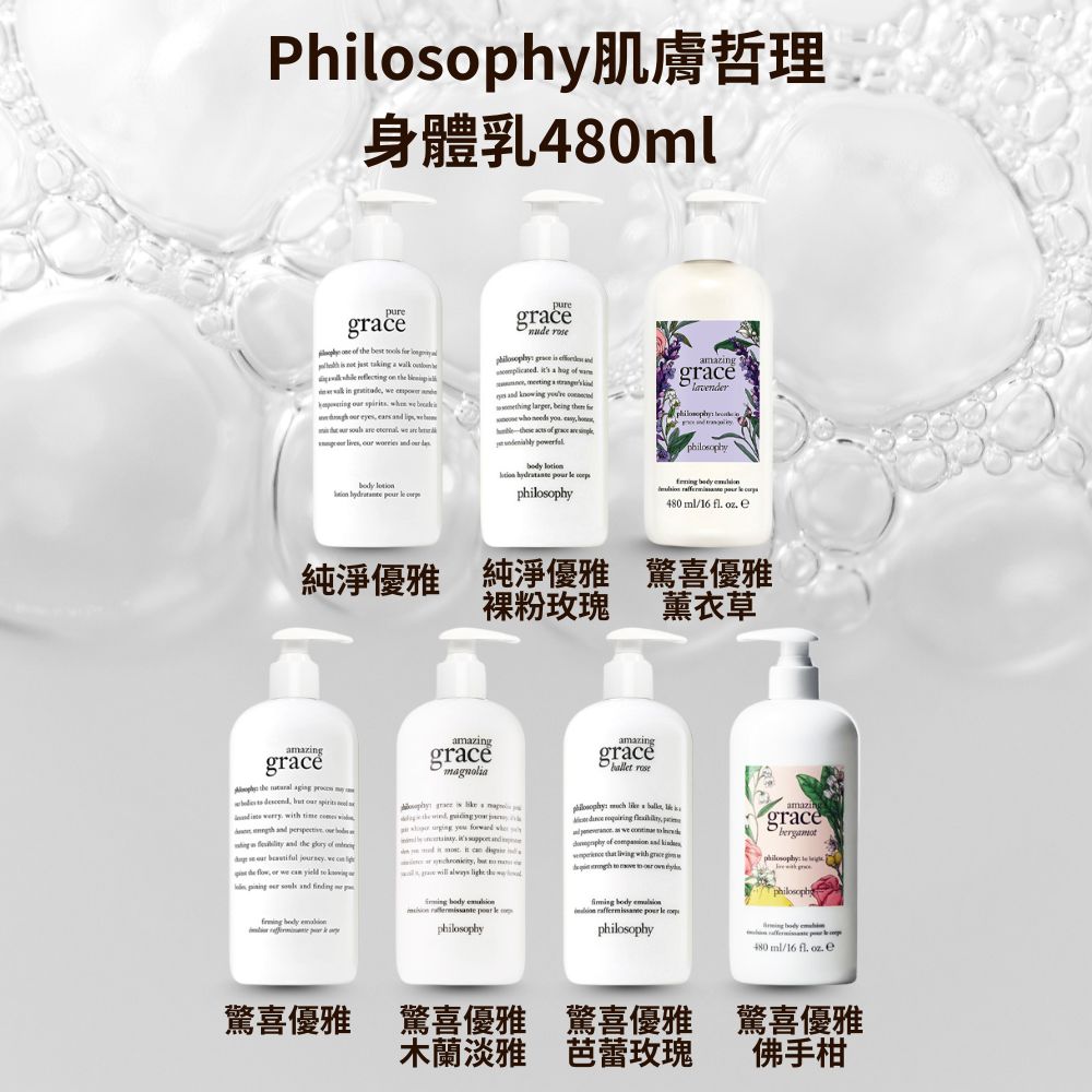【Philosophy肌膚哲理】驚喜優雅/芭蕾玫瑰/純淨優雅/薰衣草/佛手柑 身體乳 (480ml) -任選【平輸版】