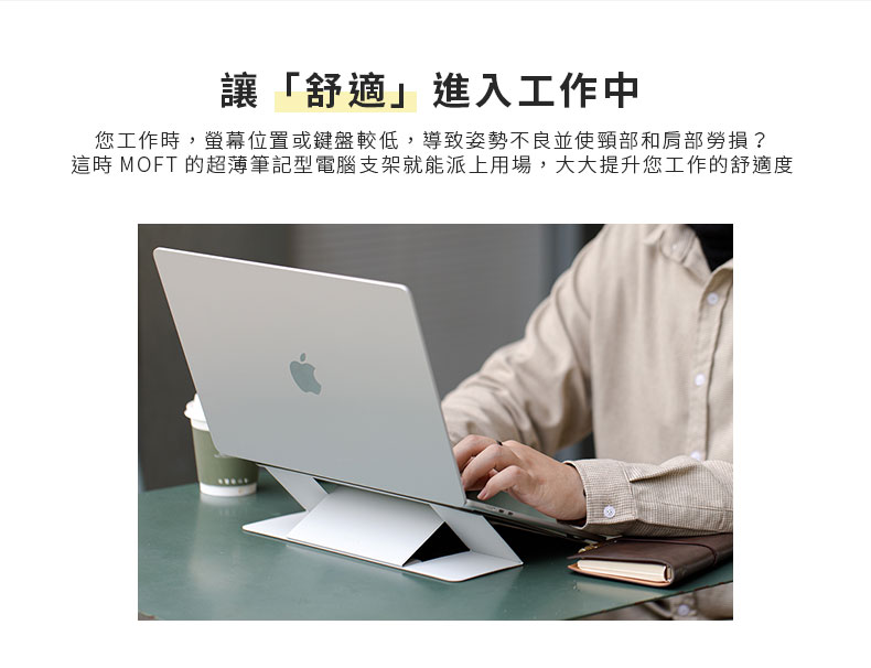 ◇超薄外型,無感攜帶◇通風孔設計,有效散熱◇2種角度自由切換◇底部握槽設計,快速展開支架◇新增MOVAS™純素皮革材質◇5kg耐重,穩固不晃