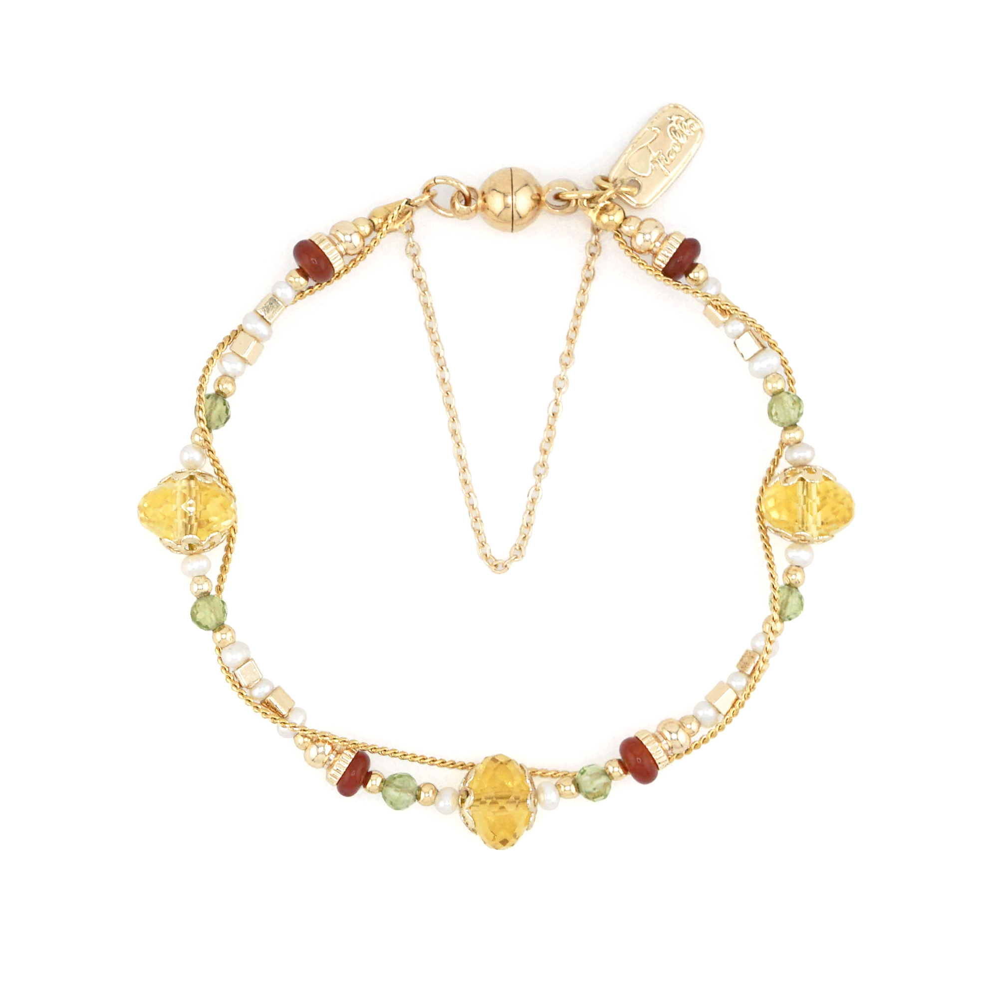 – 商品材質 Product Materials –黃水晶、紅瑪瑙、橄欖石、淡水珍珠、黃銅鍍18K金