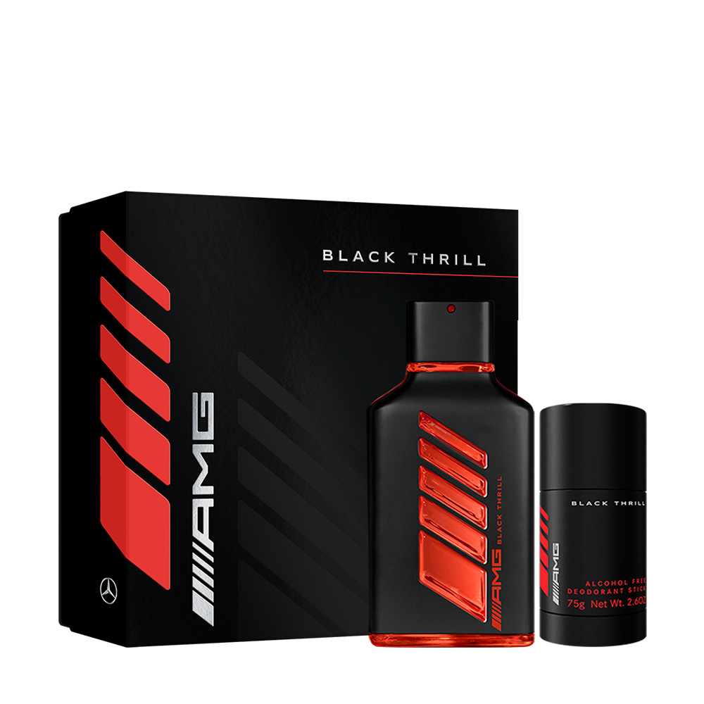 THRILL極速淡香精系列的名稱靈感源自AMG帶來的強烈感官體驗與對於高性能的渴望,推出了三款標誌作品,三款香氛展現出三種截然不同的個性,各自擁有專屬自己的風格、生活方式與世界觀,但同樣有著追求卓越的心態及享受著突破極限帶來的刺激感。