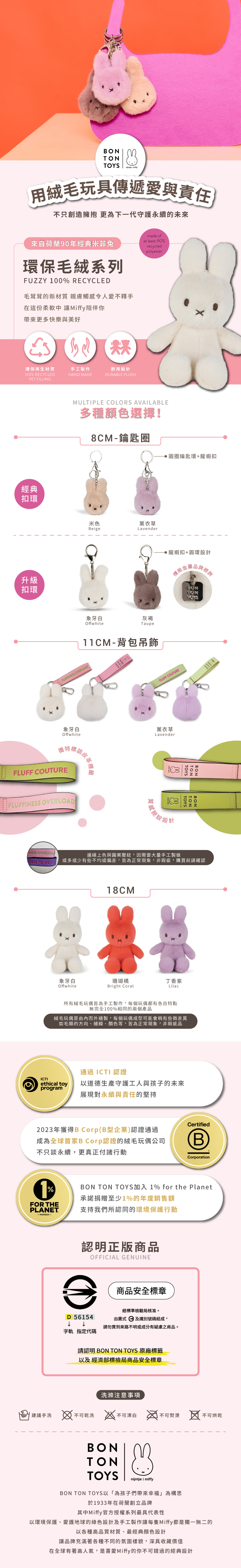 品名:BON TON TOYS Miffy米菲兔環保毛絨背包吊飾- 11cm (兩色)