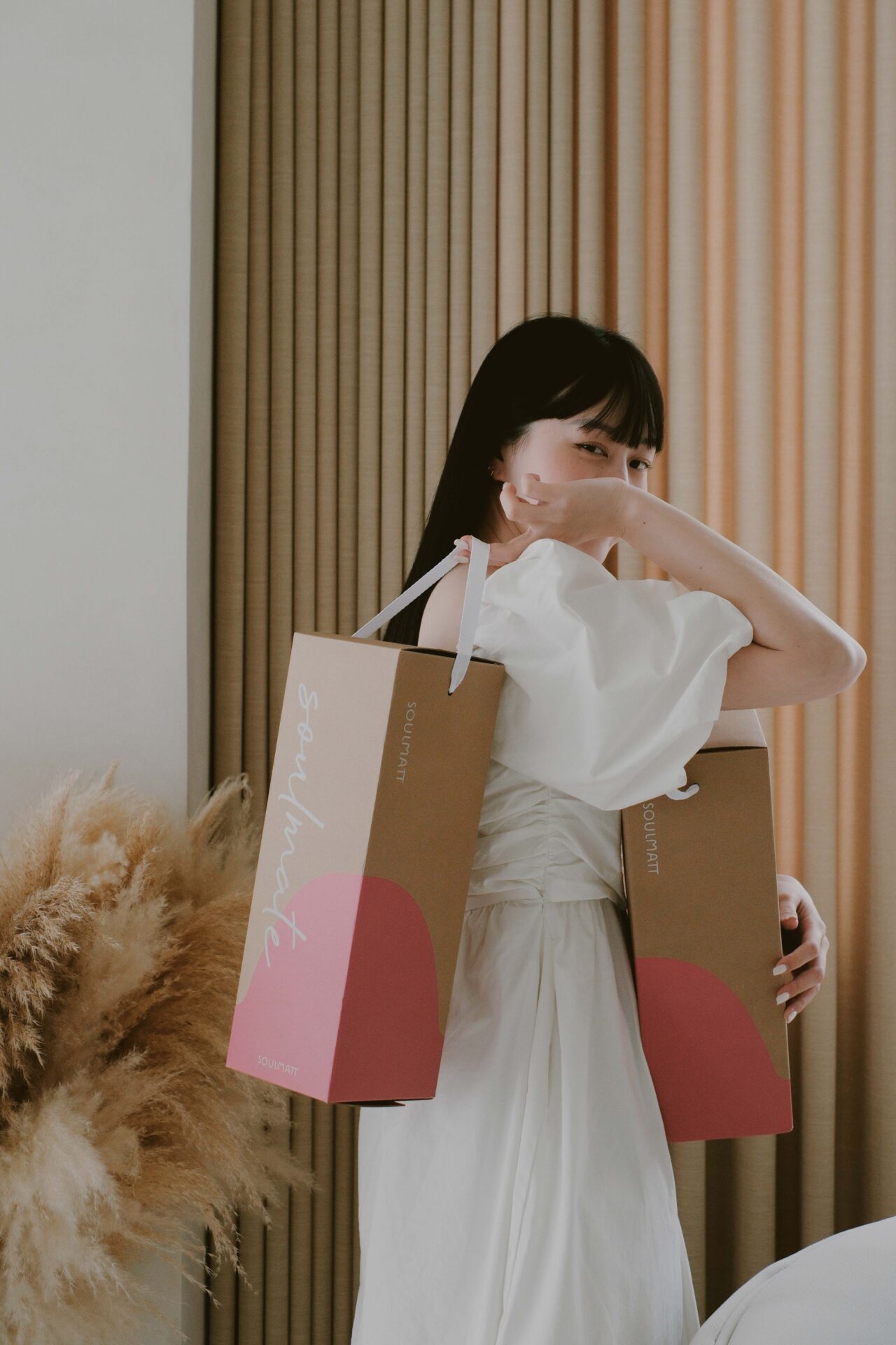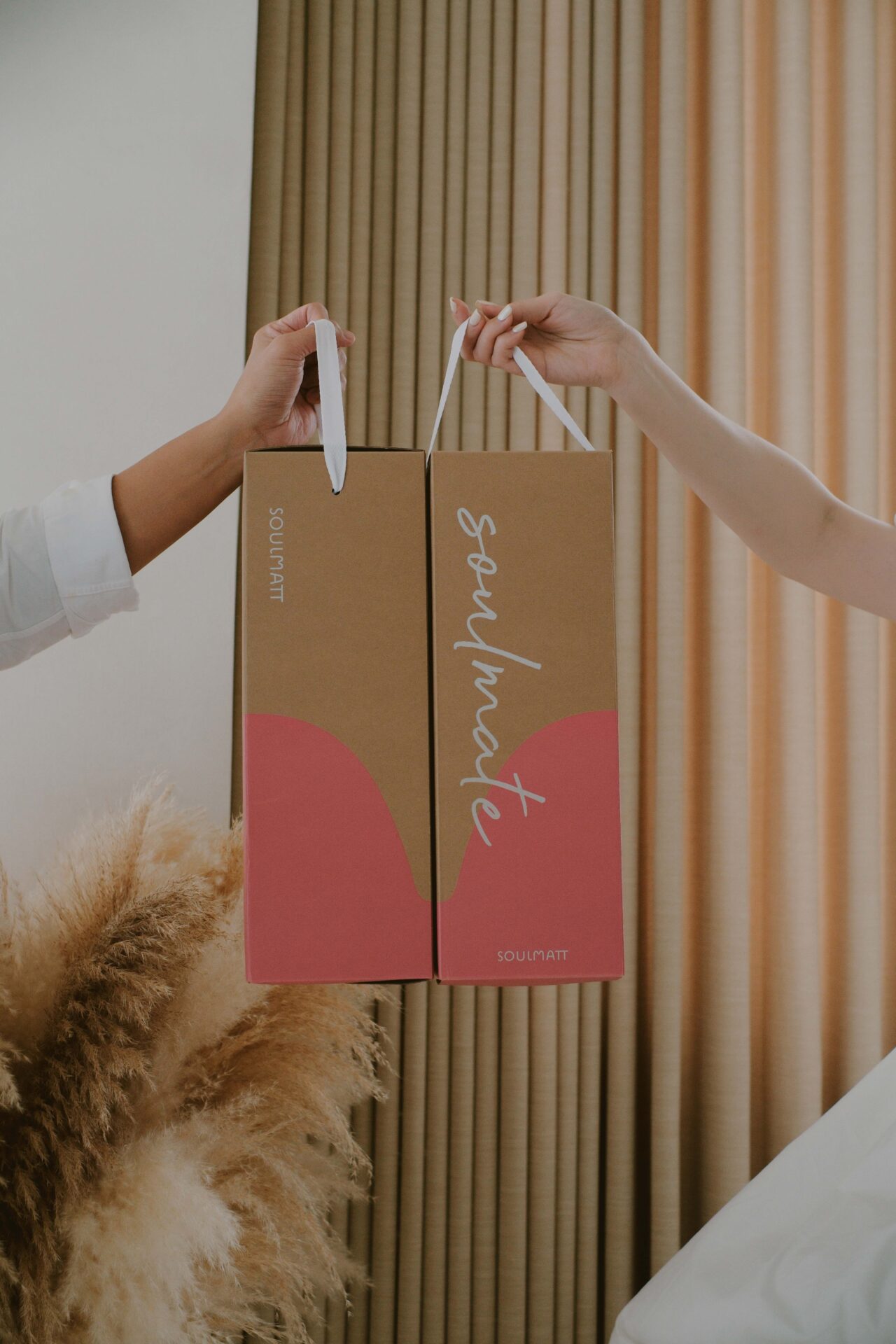 這不是偶然的顏色配置,而是一個被設計過的寓意。當兩個盒子並肩而立,粉色的曲線自然合成一顆完整的愛心──象徵兩個獨立的靈魂,在生活裡彼此靠近、相互成全。盒身一側寫著SOULMATT,另一側則是soulmate ; 一個是品牌名,一個是關係的名字,合在一起,成為這份禮物真正想傳遞的溫柔話語。