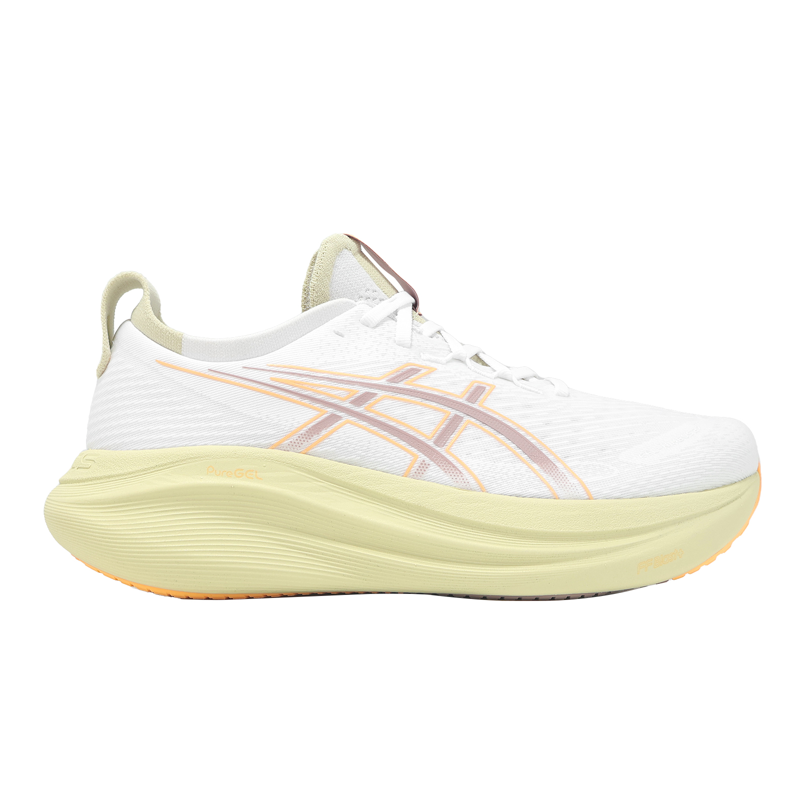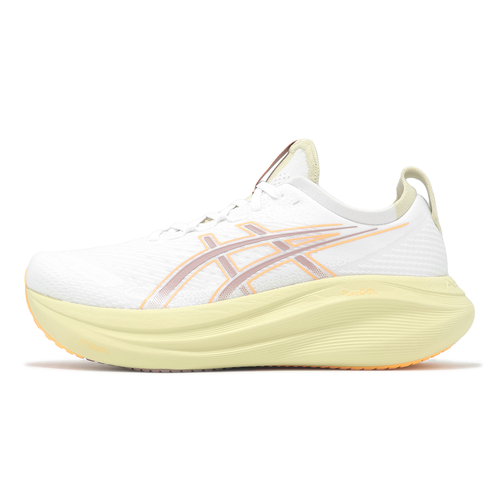 * 中底使用單層加厚的 FF BLAST PULS ECO 科技中底與內置式 PureGEL 亞瑟膠,打造更輕盈柔軟且回彈性更佳的緩震腳感;同時後跟的延伸設計,有效強化落腳時的穩定性。