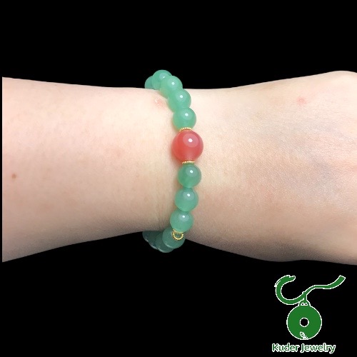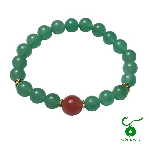 [快速出貨]【Kuder Jewelry】天然冰種獨龍玉鑲南紅造型手鍊附珠寶鑑定書