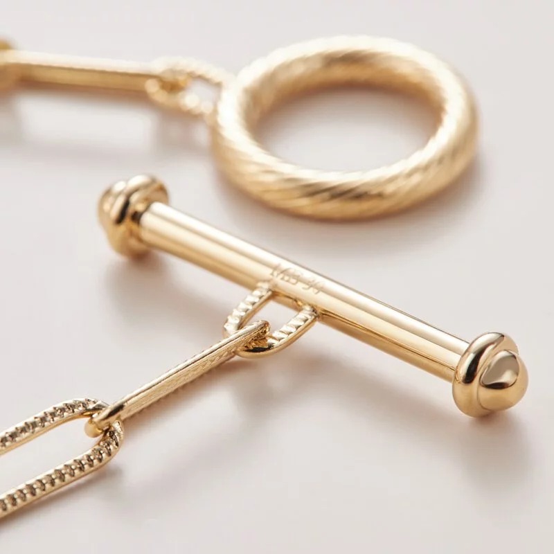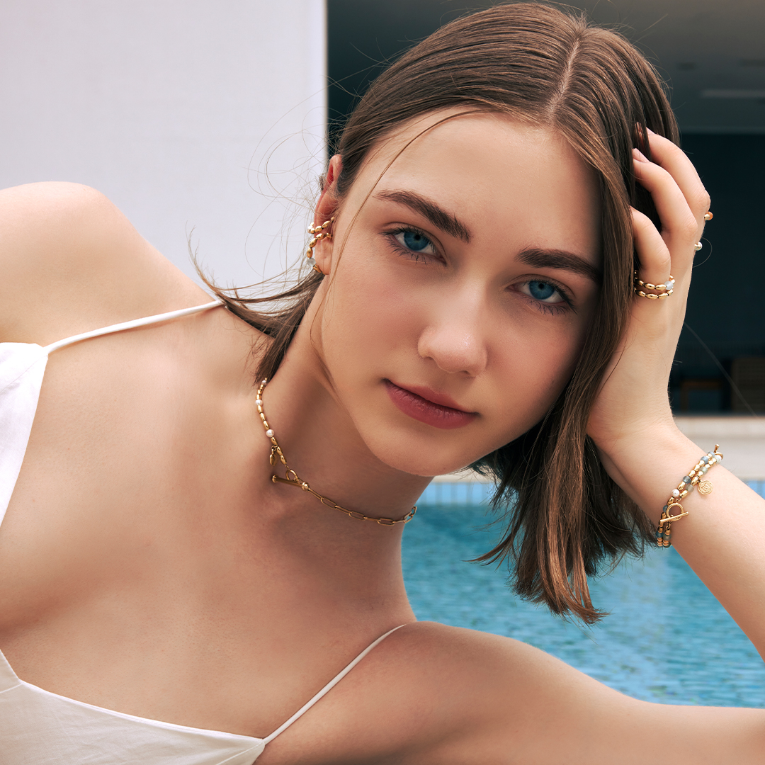 每段關係的靠近,都需要一個契機;用一個扣環,開啟更多靠近的可能以海洋為靈感,結合金色米珠與礦石POP手鍊、以船隻起程為發想更有繩索紋路細節的Anchor手鍊,在動靜之間閃爍如波光粼粼特別設計的OT扣環,不只方便穿脫的巧思,更象徵著更接近自由、啟程與串聯一款單戴是手鍊,一扣相連轉換為項鍊,依每天心情與穿搭自由切換無需華麗堆砌,簡單扣上成就風格。你送出的心意「不只漂亮,更多的是細節串聯」