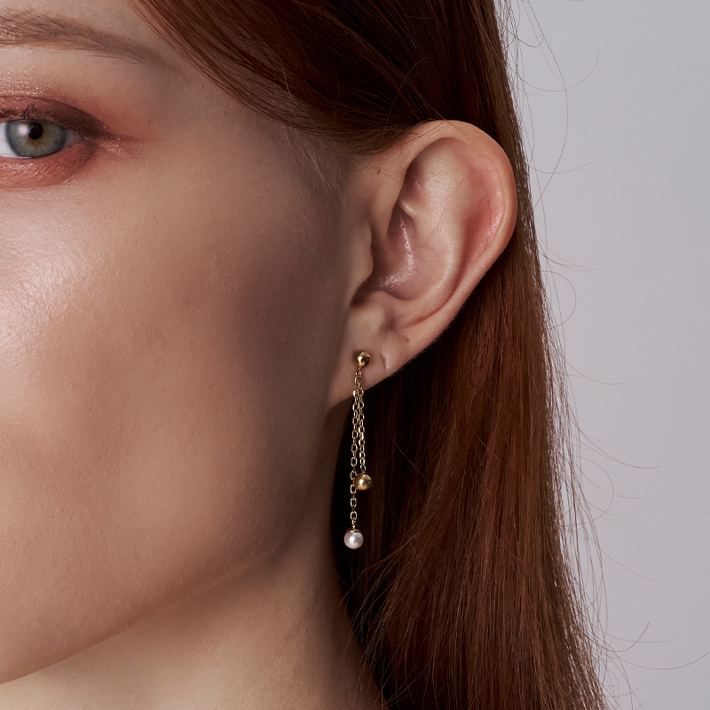 █ Timeless - For ME 雙鍊珍珠耳環 4mm