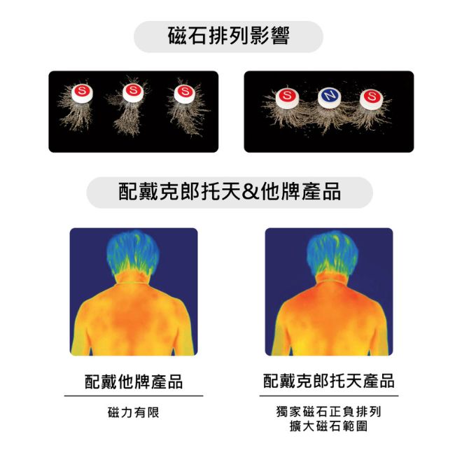 磁石採用獨家N極、S極交互排列,有效促進血液循環,舒緩配戴部位肌肉。