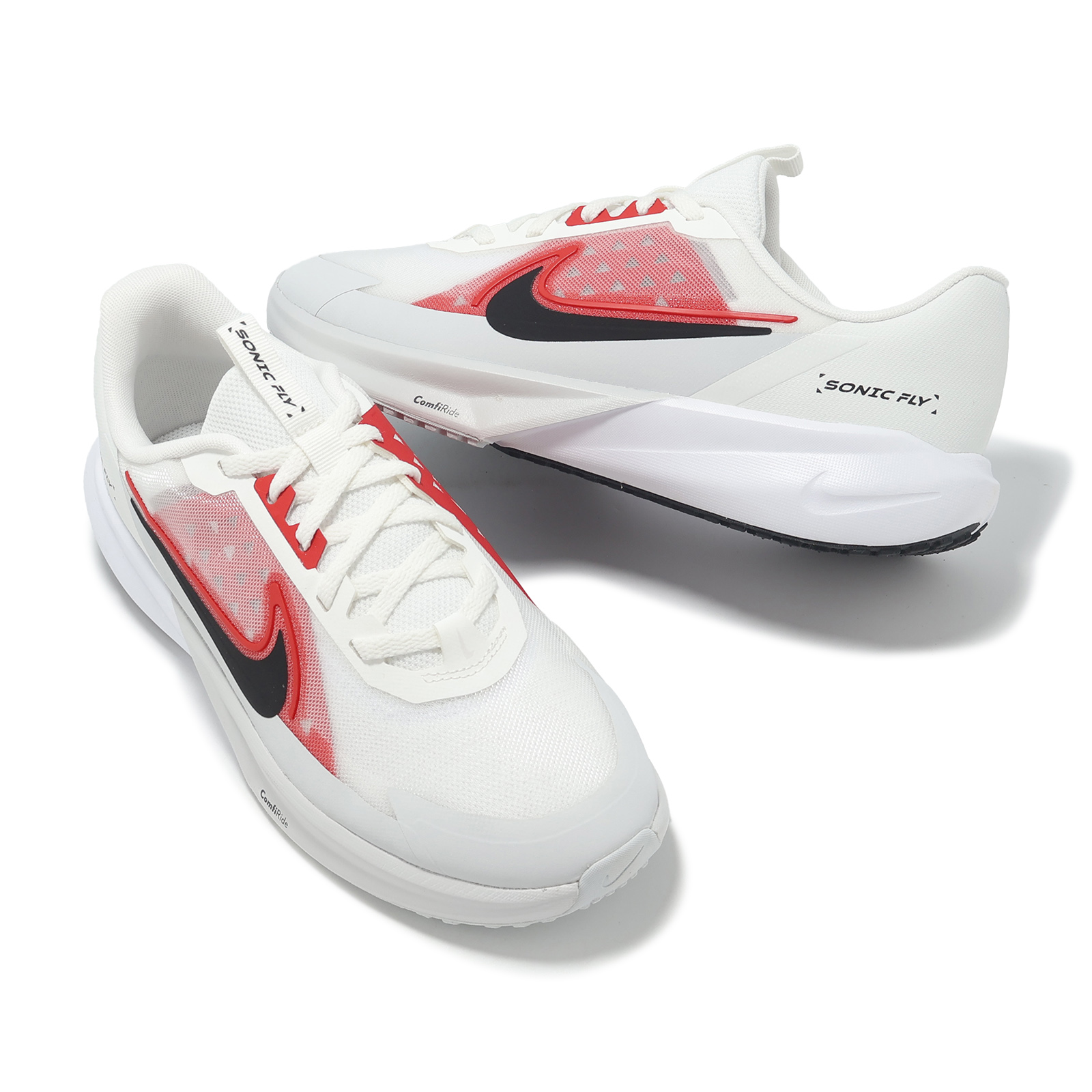 品牌: NIKE型號: FZ0017-101品名: Sonic Fly GS版型: 版型正常* 鞋面採用網眼部設計,提供輕盈透氣腳感,加固鞋頭和兩側,提升耐用性。
