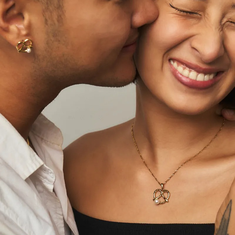 匠心手捏的 Pretzel 扭結化作心形結構,細節的不對稱設計更添手作溫度