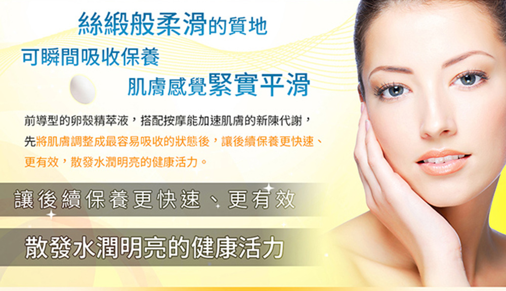 水嫩,滴滴滲透肌底補足肌膚所需水分,更添加卵殼素及神經醯胺鞏固肌膚脆弱屏障。