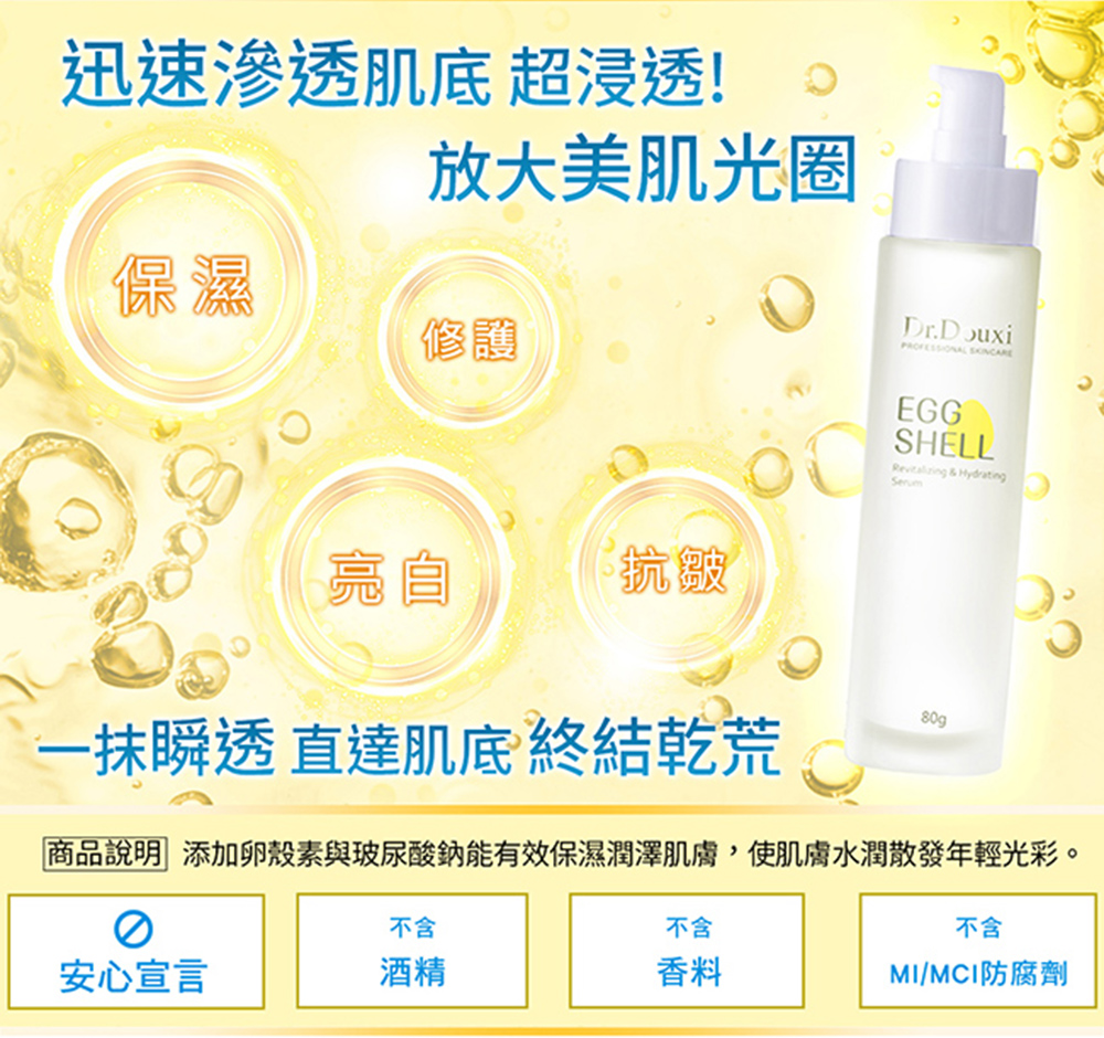 品名:【Dr.Douxi朵璽】1111限定精選套組-F(玻尿酸精華液30ml+卵殼精萃液80g+淨白乳液80ml)