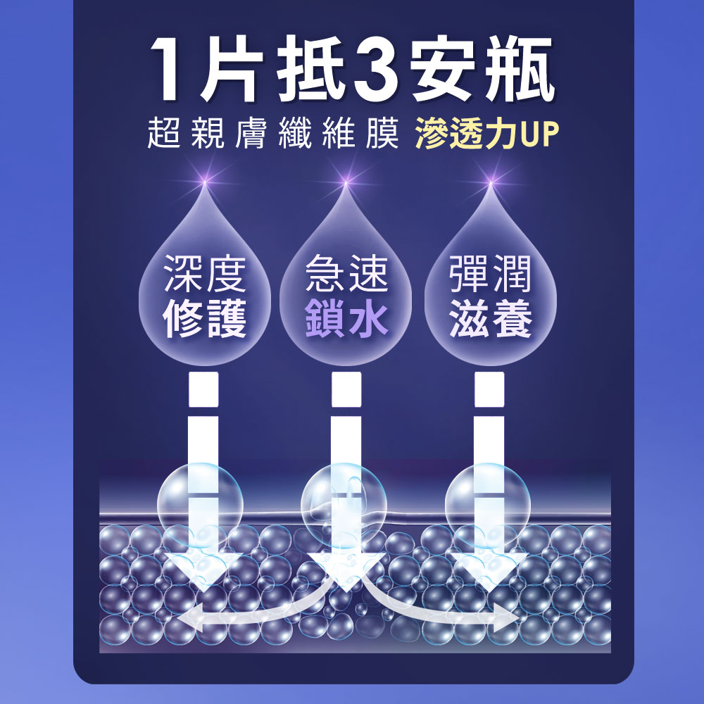 1片抵3安瓶,迅速為肌膚補水,將安瓶精華送至肌肉底。