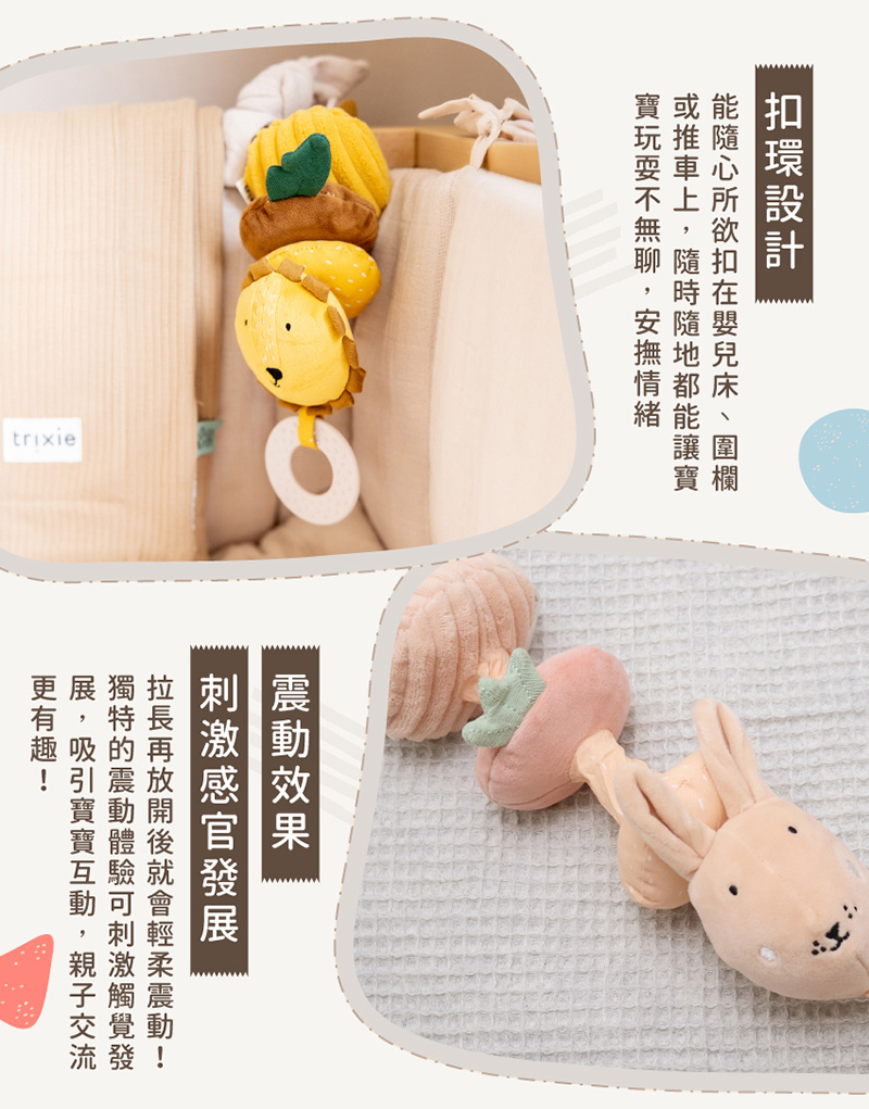 商品介紹商品內容名稱:比利時Trixie 動物造型拉拉跳舞玩具功能:寶寶感統|穩定情緒好幫手尺寸:8x14x8 公分 配送辦法完成付款後會儘速使用本公司配合的黑貓物流寄出,出貨時間三日工作天(不含例假日)。