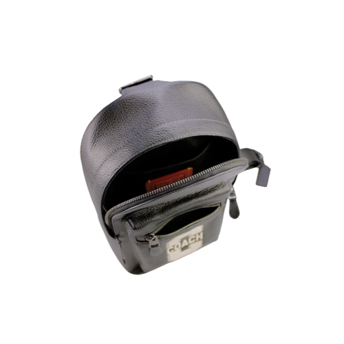 COACHWest Pack美式校園風LOGO黑色荔枝紋皮革男士多用休閒背包,外部正面設置便利拉鍊袋、內置一開口夾層,可調式背帶搭配金屬扣夾及雙環提供多重背法,弧型拉鍊開合物品易於拿取收納便利。★尺寸:寬18CM高31CM側邊底寬8CM,可調式背帶★規格:弧型拉鍊開合,內置一開口夾層、外部正面一厚式拉鍊袋