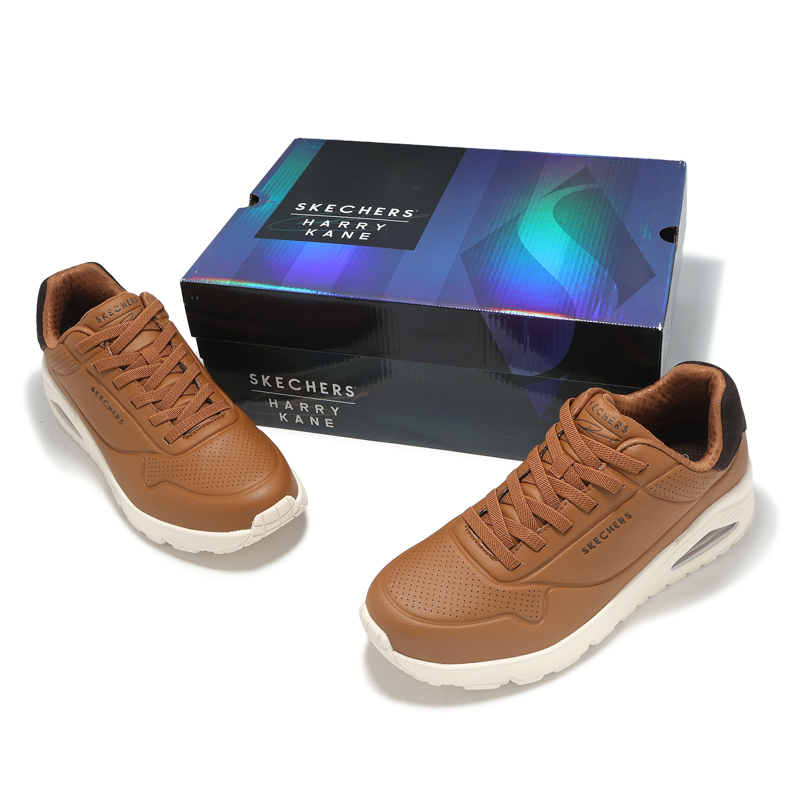 品牌: SKECHERS型號: 183920-CSNT品名: Uno-Harry Kane Air版型: 版型正常這款由 Skechers 與世界級足球巨星 Harry Kane 聯名打造的潮流鞋款,結合運動靈魂與街頭風格。採用立體壓紋皮面鞋面與麂皮後跟拼接,搭配 SKECH-AIR 可視性氣墊中底,不只舒適,更時尚有型,無論走在街頭還是亮相派對,都是全場焦點。