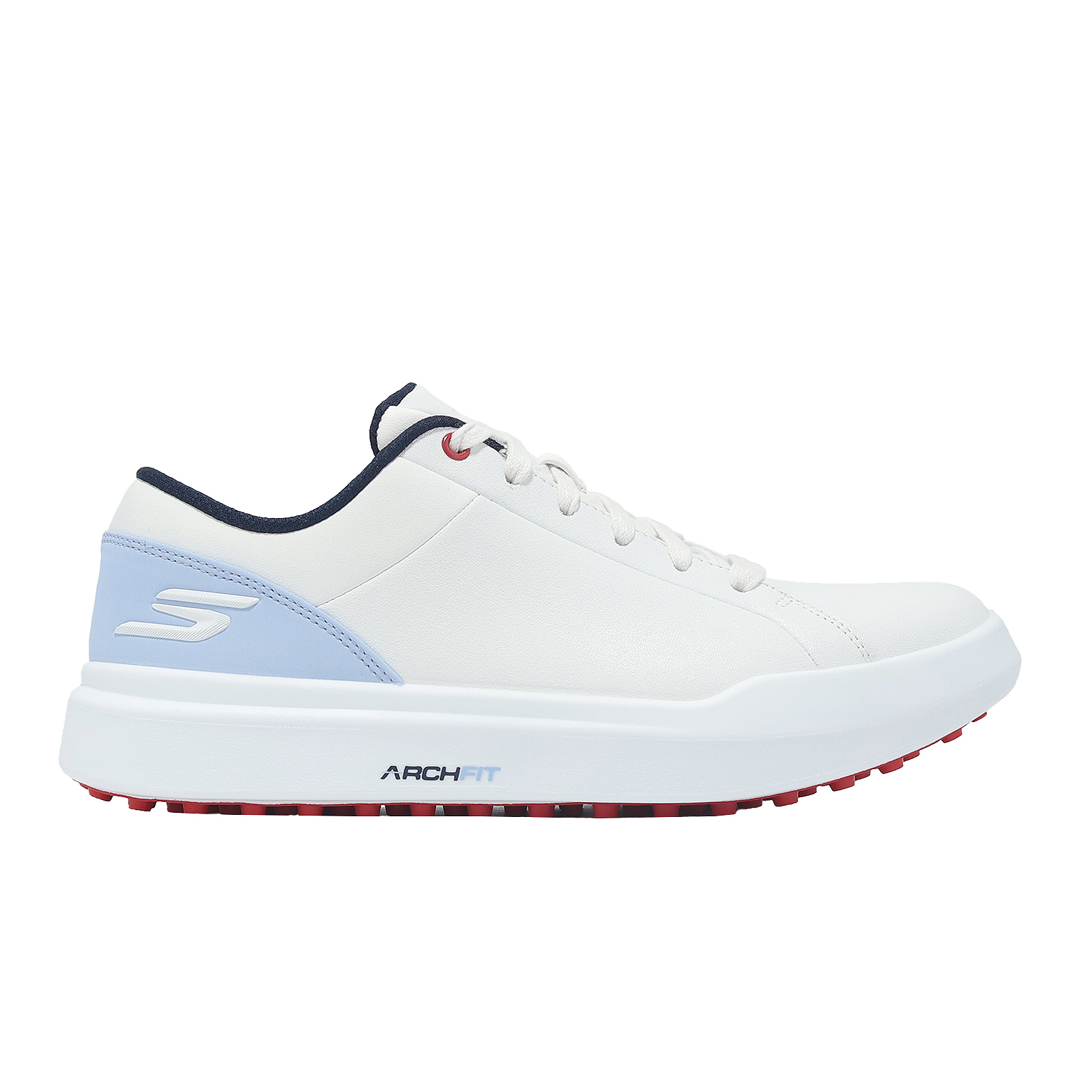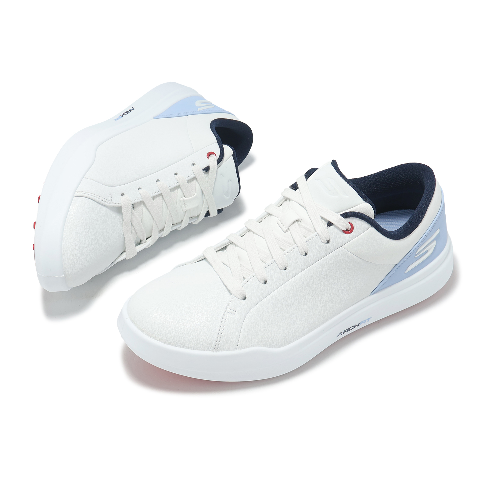 品牌: SKECHERS型號: 123128-WLB品名: Go Golf Drive 6版型: 版型偏小, 建議大半號* 鞋面採用合成皮革搭載防水科技製成,讓您在球場上擁有舒適乾爽腳感。