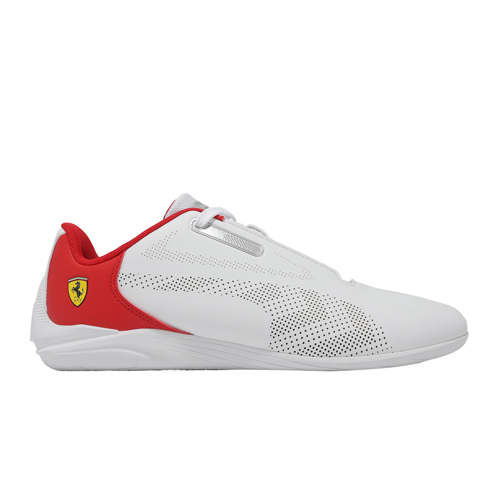 * 鞋身配置以義大利跑車品牌法拉利 (Ferrari) 的代表色呈現,並於鞋側縫製上辨識度極高的躍馬標誌。