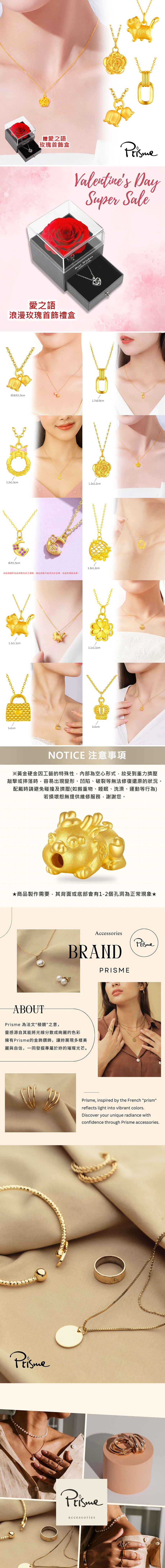 品牌 Prisme Gold材質說明 墜飾:999純金|鍊條:鈦鍍金重量 金重:約0.08錢±0.03錢尺寸 墜飾如圖;鍊長約46cm商品包裝配件 項鍊、保證書、精美禮盒