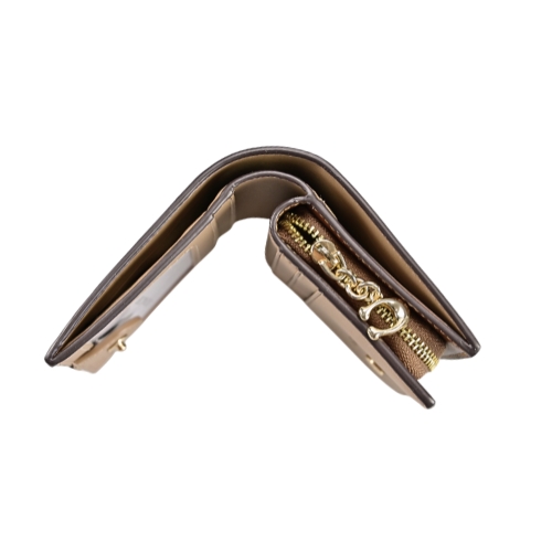 COACH實用短夾,採經典C LOGO PVC 搭配內素面真皮,釦式雙摺開合使用便利,內裡格置卡片格、透明證件夾與鈔票夾,外部拉鍊零錢袋,尺寸便攜。★尺寸:寬10.5CM高9CM側邊厚2.5CM ★規格:釦式雙摺開合,內設單格鈔票夾/3格卡片夾/2格萬用夾/單格透明證件夾,外部背面一拉鍊零錢袋
