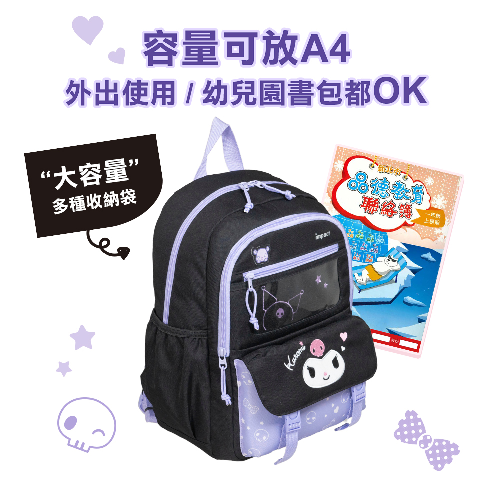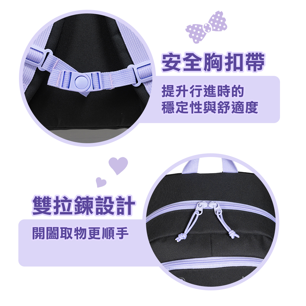 大寫的Q萌可愛!經典酷洛米黑紫配色,前袋為可透視TPU設計,可放置徽章或曬娃,不僅時尚耀眼,還能為孩子帶來愉悅的心情!這款輕便出遊兒童後背包款絕對能成為寶貝的最佳夥伴!不論是上學、旅遊或是戶外活動,絕對能滿足孩子的需求,享受每一個冒險之旅!