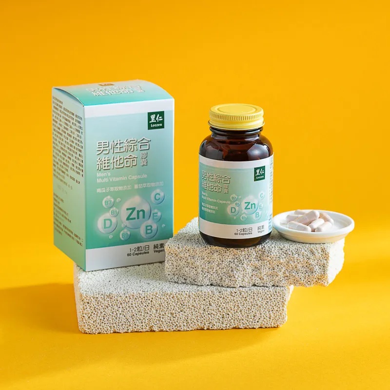 「男性綜合維他命」專為成年男性設計,提供每日營養補給,涵蓋維生素A至K,符合男性成人建議攝取量。額外添加鋅、南瓜籽萃取物及番茄萃取物(含茄紅素),幫助維持生理機能與體力,滿足日常養生需求。本產品為純素配方,符合素食者需求,膠囊成分採用植物性來源,無動物性成分,讓消費者食用更安心。