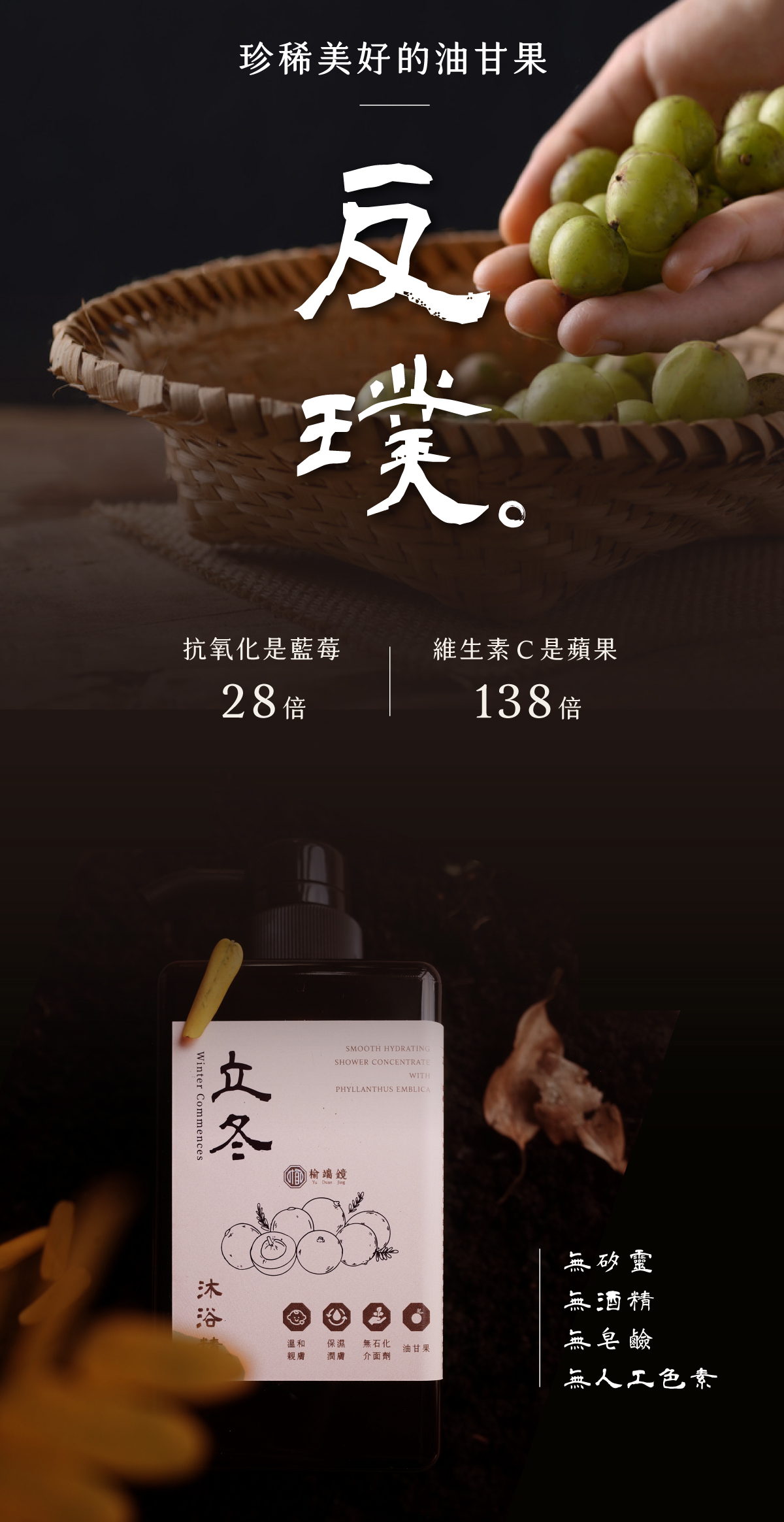 ‧ 萃取天然油甘果植物|本身的高含量維生素C和維生素E,具抗氧化性,可淨化肌膚,同時擁有植物多酚及黃酮類成分,能清潔抗污,有效洗淨。